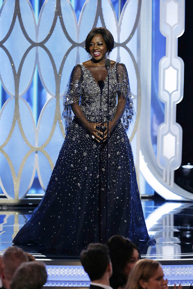This Viola Davis dress is intrinsically pretty. When I look at it in a still picture, and she’s beaming, it takes my breath away, actually. I get all the comparisons to a starry night.