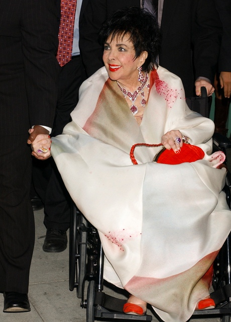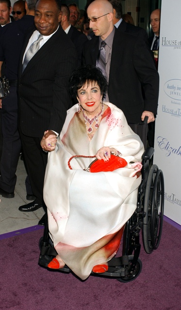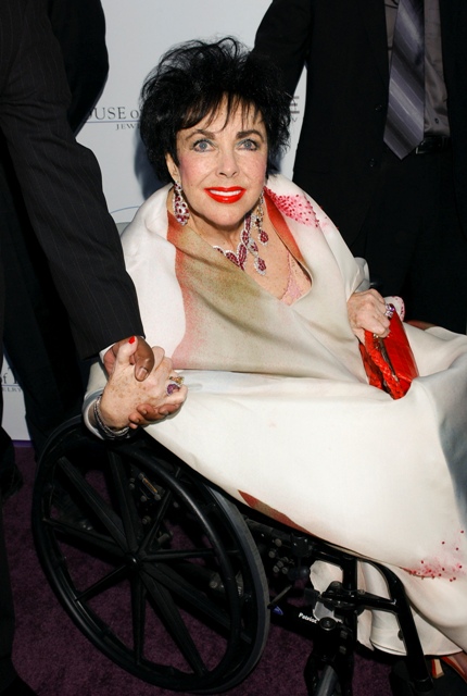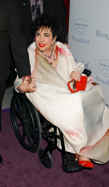 She’s in a wheelchair but she’s still fierce as ever. Check out the Grande Dame Elizabeth Taylor at the launch of her new jewellery collection in Beverly Hills yesterday.