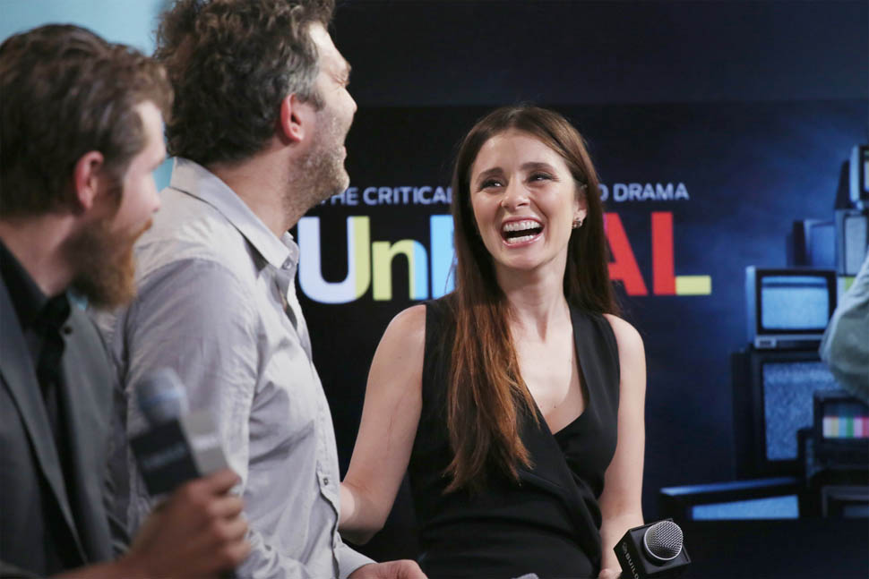 A few weeks ago, I visited the UnREAL set and interviewed co-creator Sarah Gertrude Shapiro who is (obviously) sharp, brilliant, and funny as f-ck. Shiri Appleby (aka Rachel) was directing her first TV episode ever and still took the time to do an interview – she was very frank, insightful, and incredibly generous with her time despite the fact that it was the end of a very long week for her. They spoke at length about navigating a fickle business, relationship building, hard work, and the lure of reality TV, both as an avenue to fame and as a path to “true love.”
