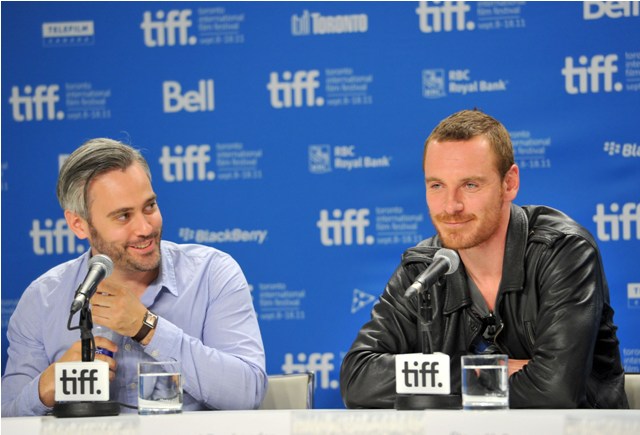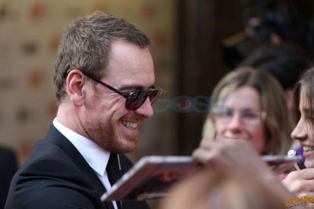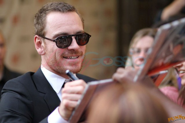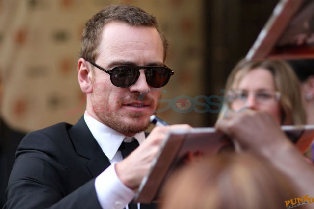 Don’t be mad at me but I’ve run out of time now and can’t write up the Fassy Zoey article from last night. They were at the CAA SmartWater party. Together. And OMG, it’s hot and crazy at the same time. But more on that later. To make up for how much I suck, please find attached some great photos of Michael Fassbender signing autographs for fans at his hotel yesterday and at the Shame presser today. He’s also junketing, and Laura’s interviewing him, and I kinda want to wait to hear her observations first before I shape my piece.