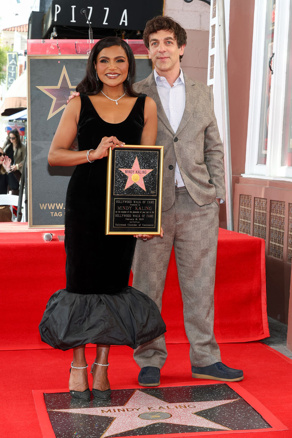 BJ Novak joins Mindy Kaling at her star on the Hollywood Walk of Fame ceremony.