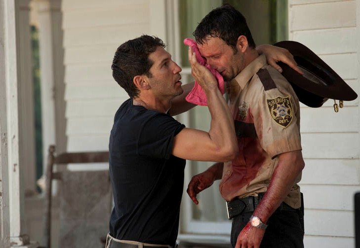The remaining survivors on the highway decide to split up: Dale, Daryl and Andrea stay with the RV and look for Sophia while Glenn, Carol and T-Dog go to the farm, since T-Dog is about to die and all. Turns out, Daryl’s been sitting on his brother’s stash of drugs all this time and has convenient painkillers and antibiotics for T-Dog. Way to suck all the urgency out of the scene.