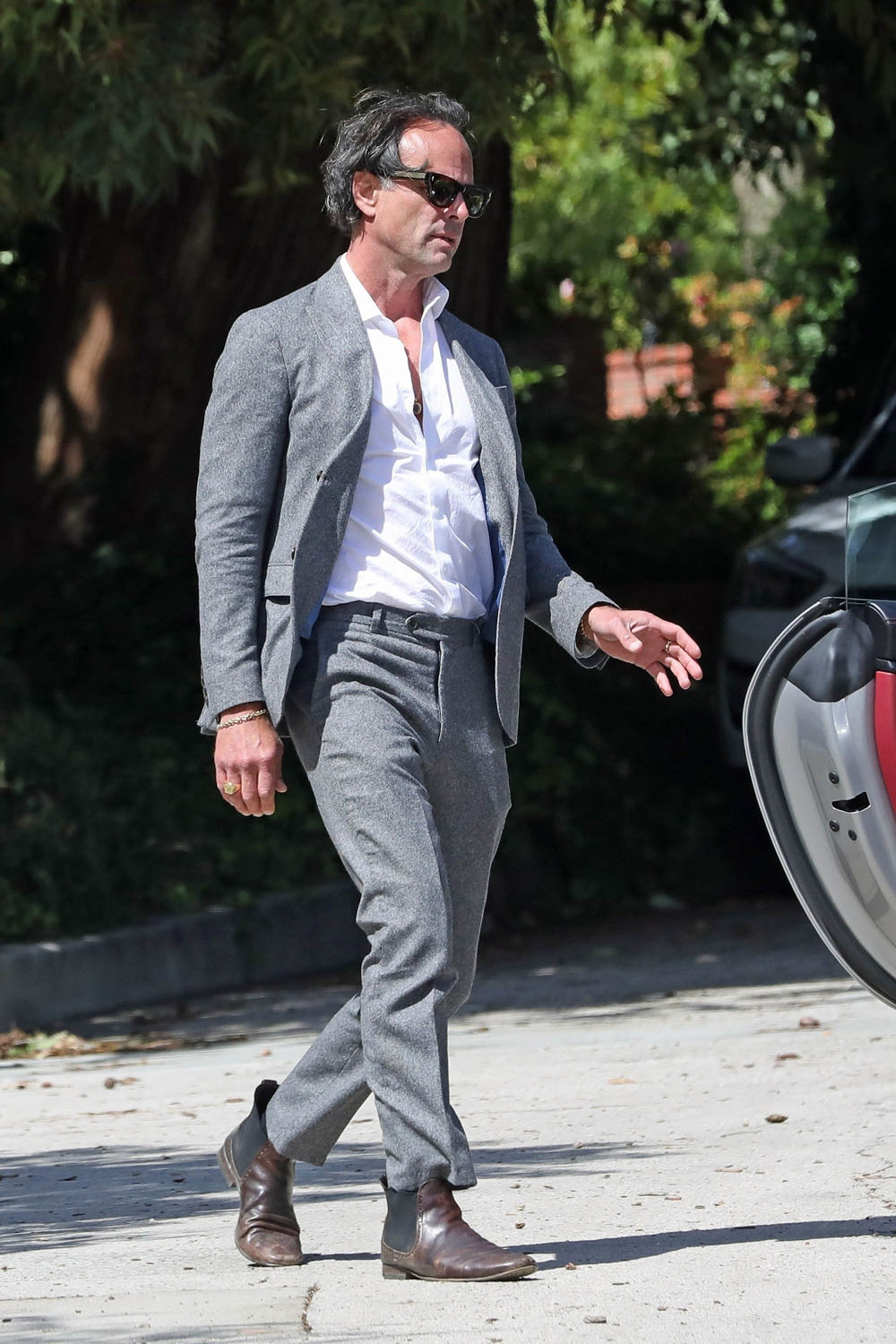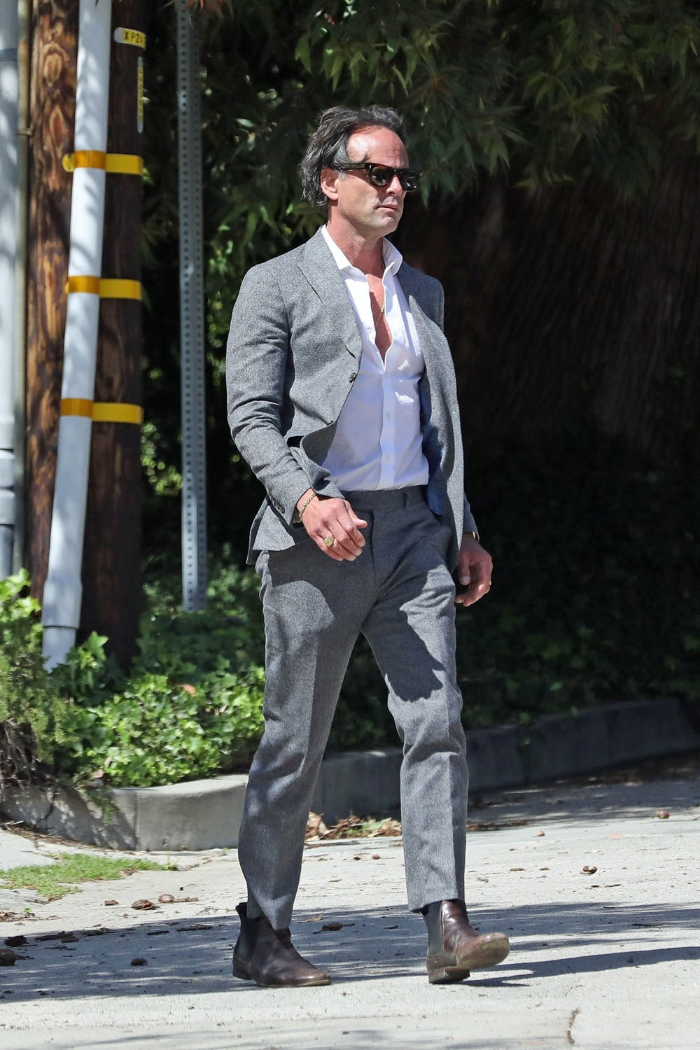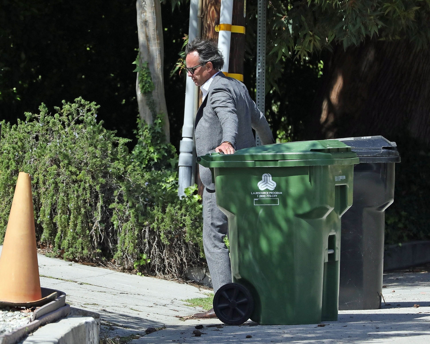 How many weeks in a row is this where we’re getting pap shots of Walton Goggins? Here he is, in what seems to be his favourite grey suit, taking out the trash. You know you’ve reached a new level of fame when the paparazzi are all up in your business when you’re doing mundane household chores.