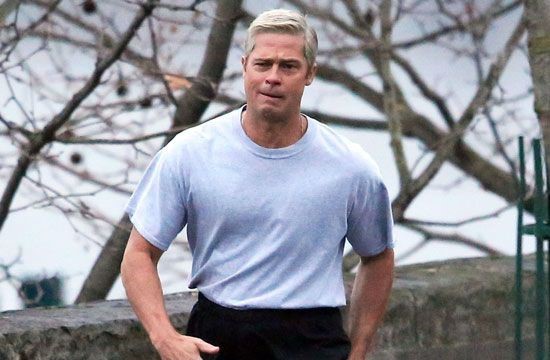 We’re told almost everything, and shown very little. Pitt marches around, holding his body stiffly and slightly bow-legged—and, oddly, bow-armed—and he makes this face the entire time…