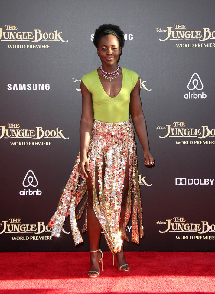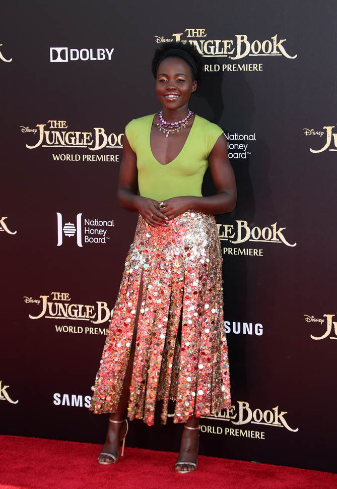 Attached - Lupita Nyong’o at the Los Angeles premiere of The Jungle Book the other day.