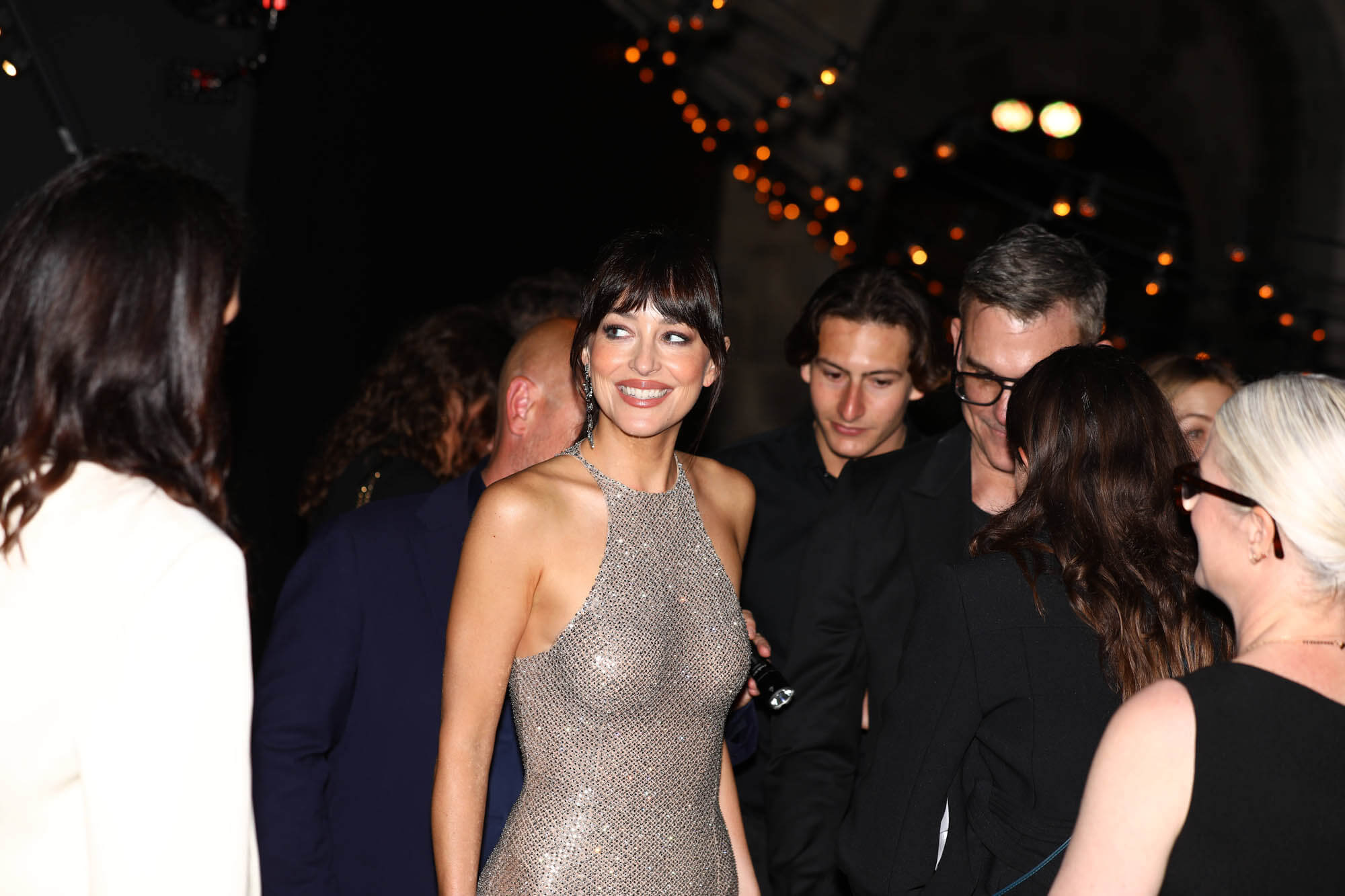One of the topics of conversation heading into Cannes this year was about the dress code and the festival’s policy on the naked dress, effectively banning it from the red carpets at the Palais, along with gowns that are too big. We haven’t seen too many so-called violations but here’s Dakota Johnson in a naked dress in Cannes, just not at the premiere. We’ll come back to this in a minute.