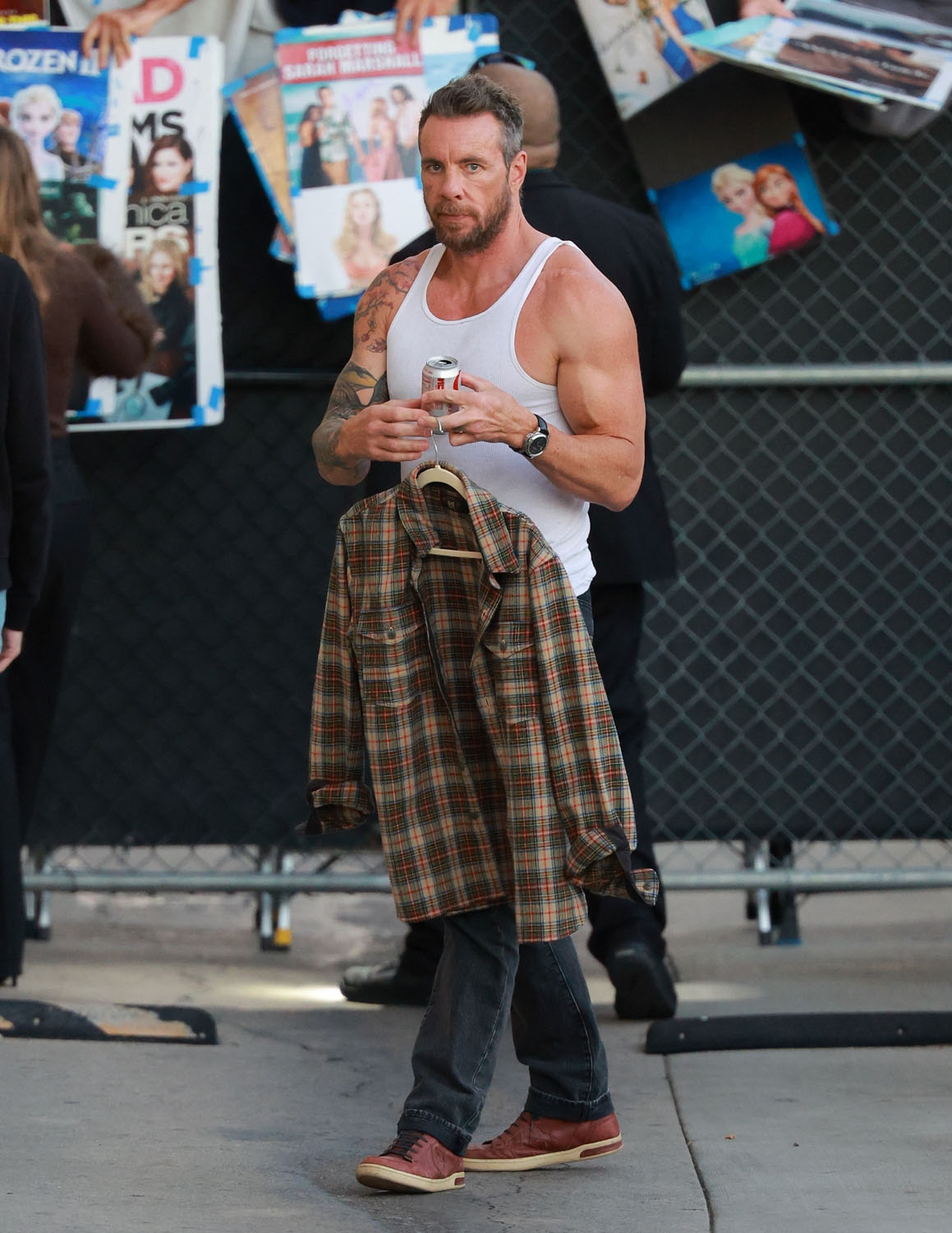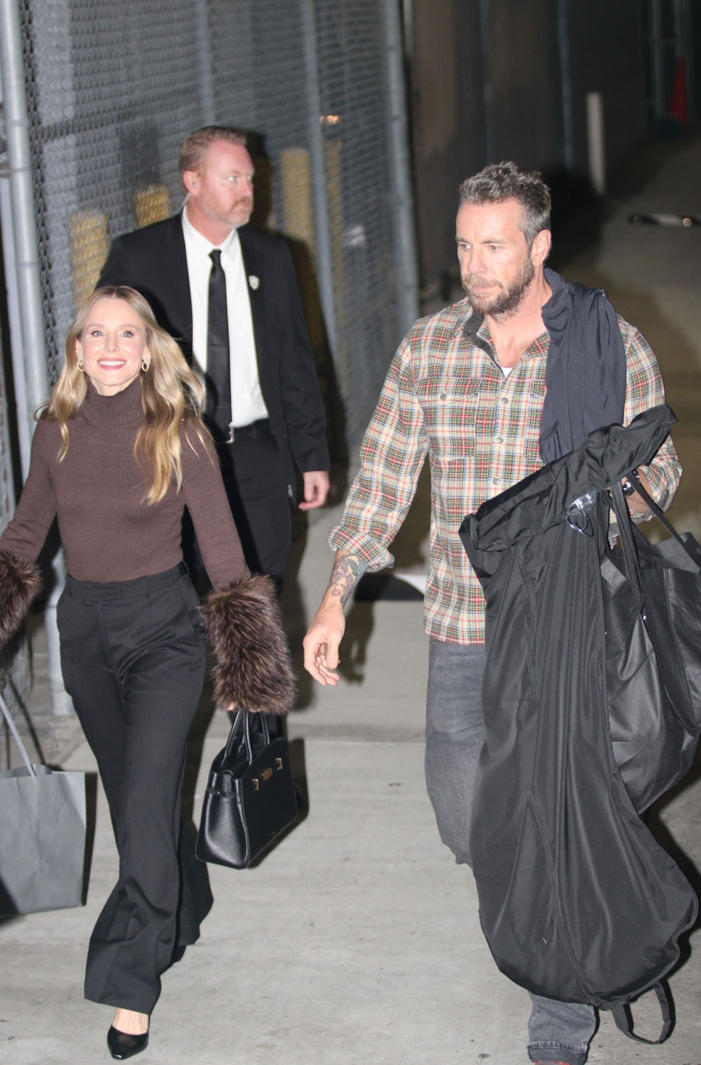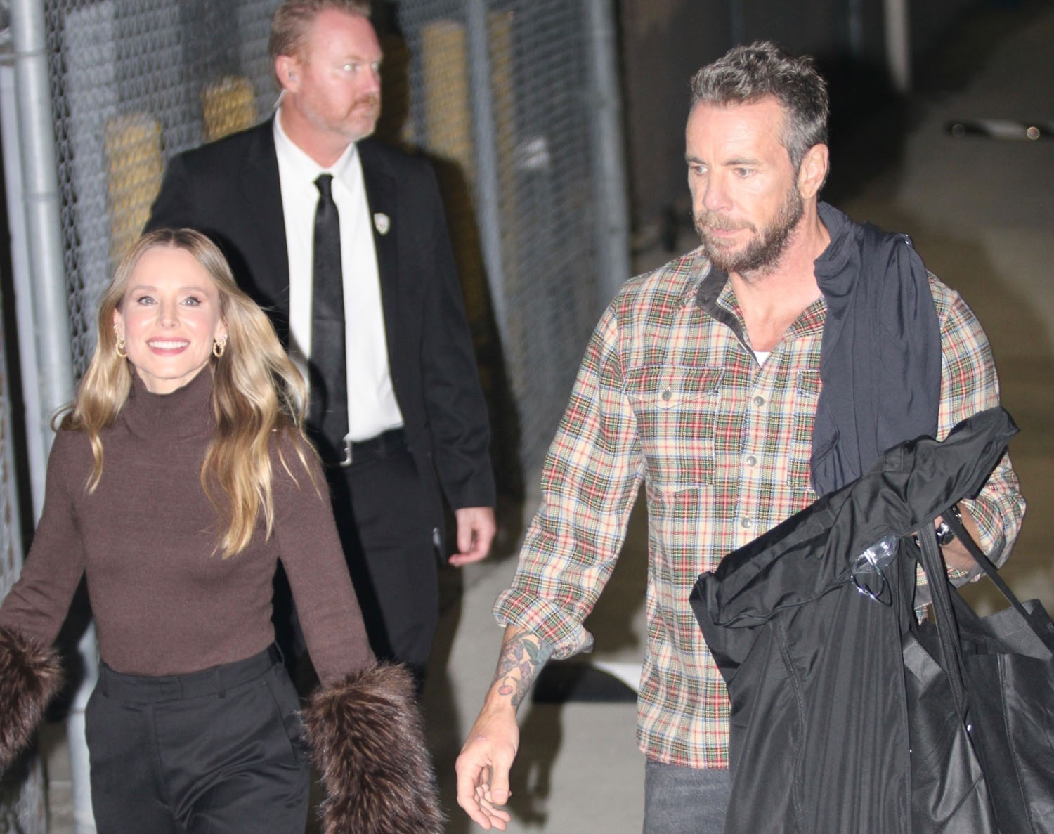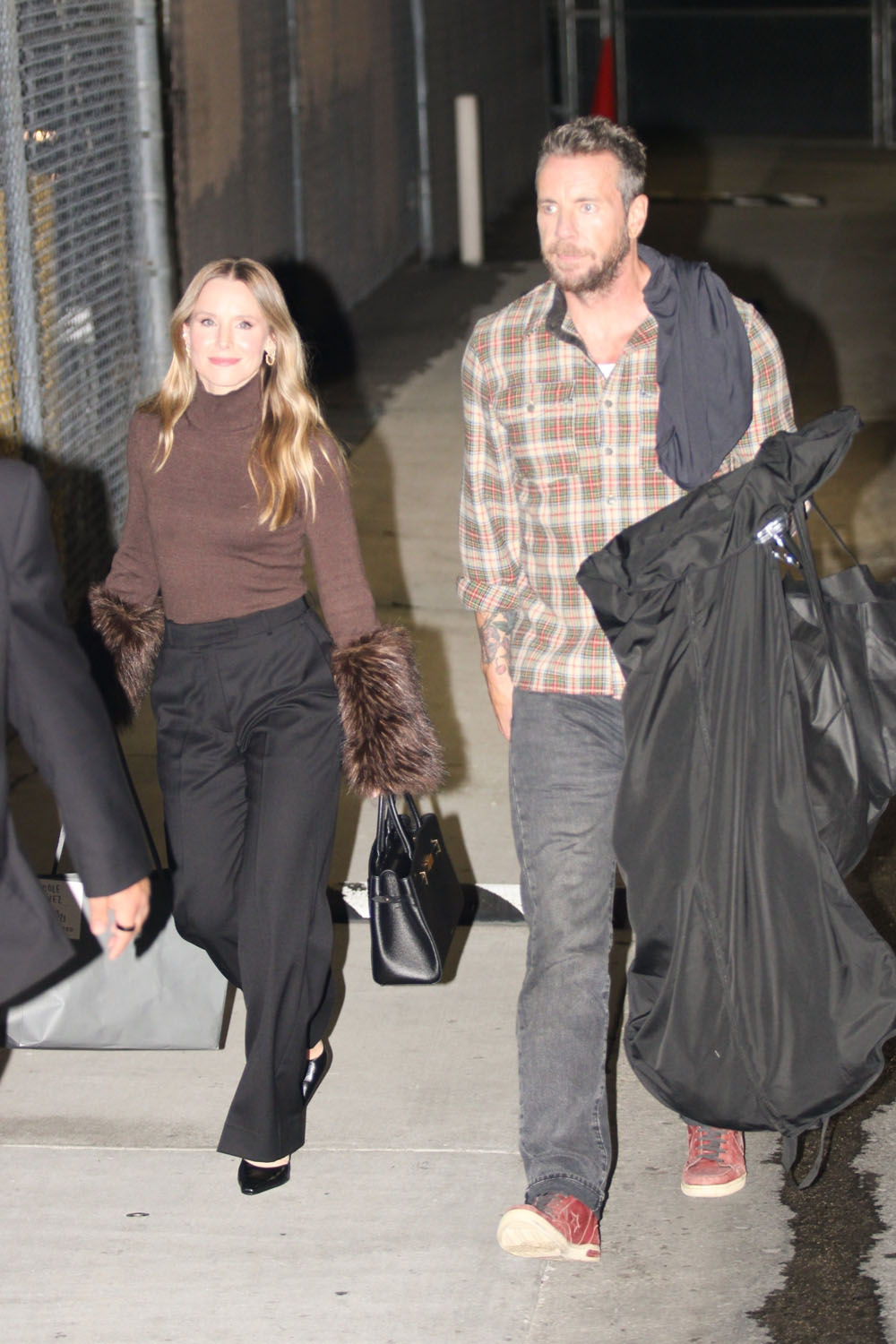 Dax and Kristen were on Jimmy Kimmel Live! last night, ostensibly to promote their 2012 movie, Hit & Run. That’s not a typo – the movie came out over a decade ago and is now streaming on Netflix. But, like, not freshly on Netflix; it was added to the library in September! This is one of the reasons why there are people out there who think this appearance was to do damage control for said controversy. All the years of controversy but most recently all that backlash when she posted about their anniversary and casually joked about domestic abuse.