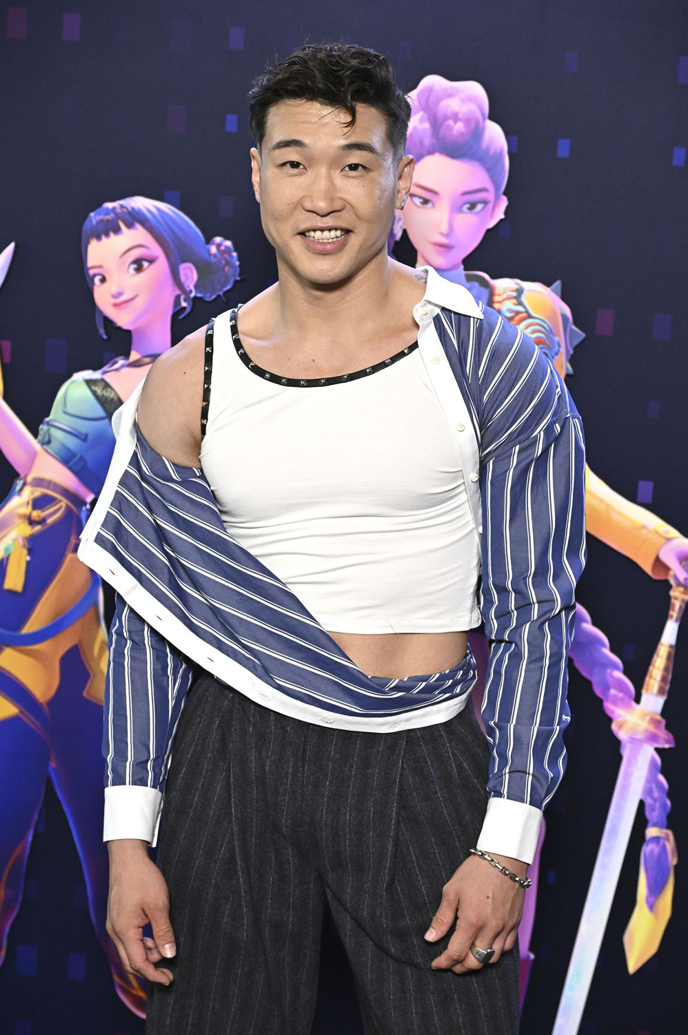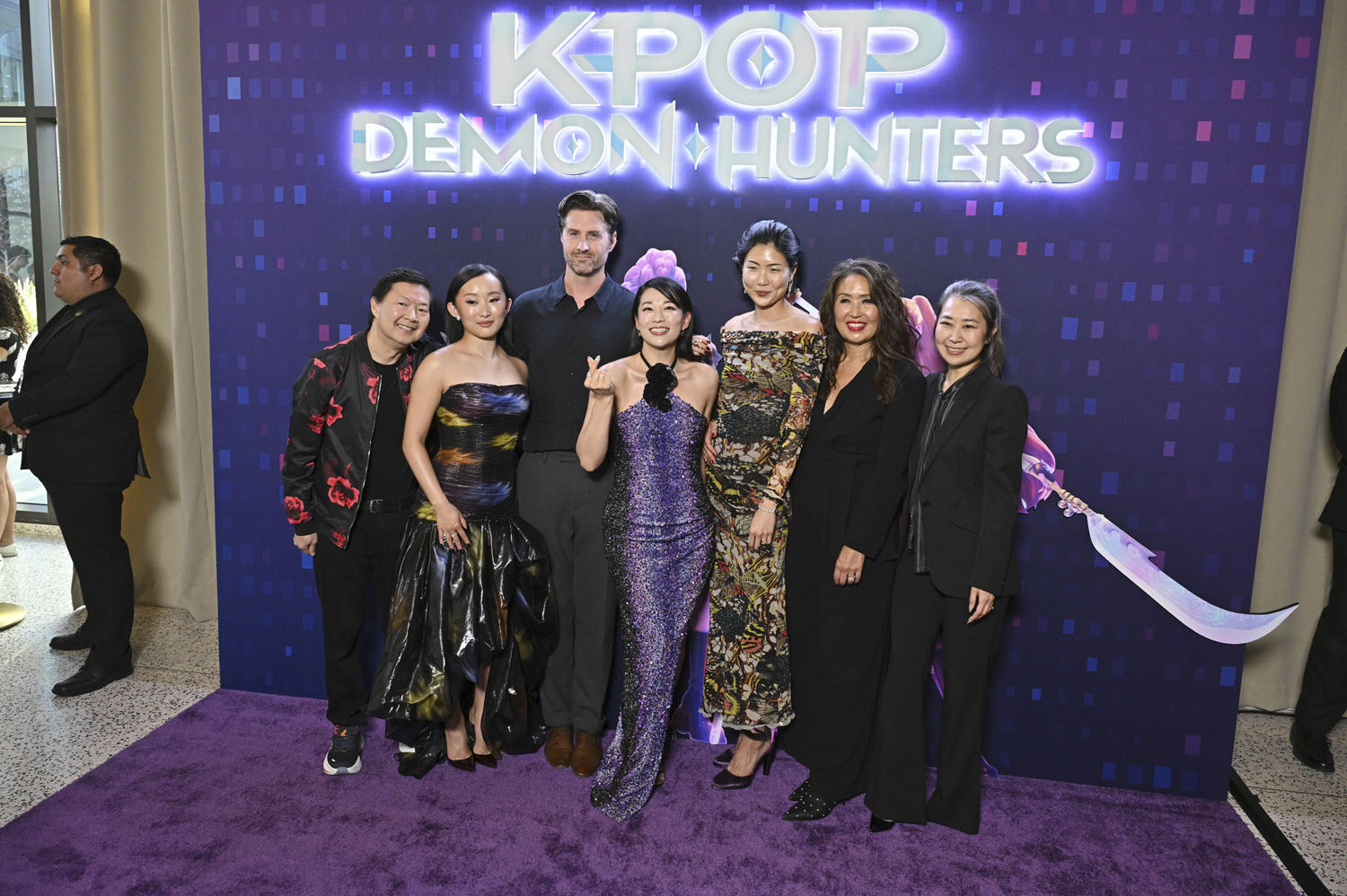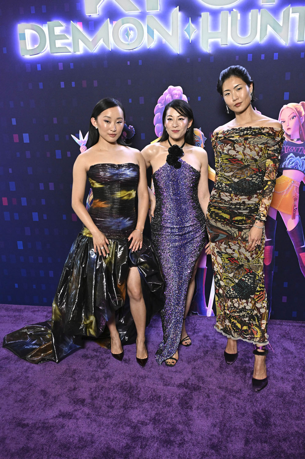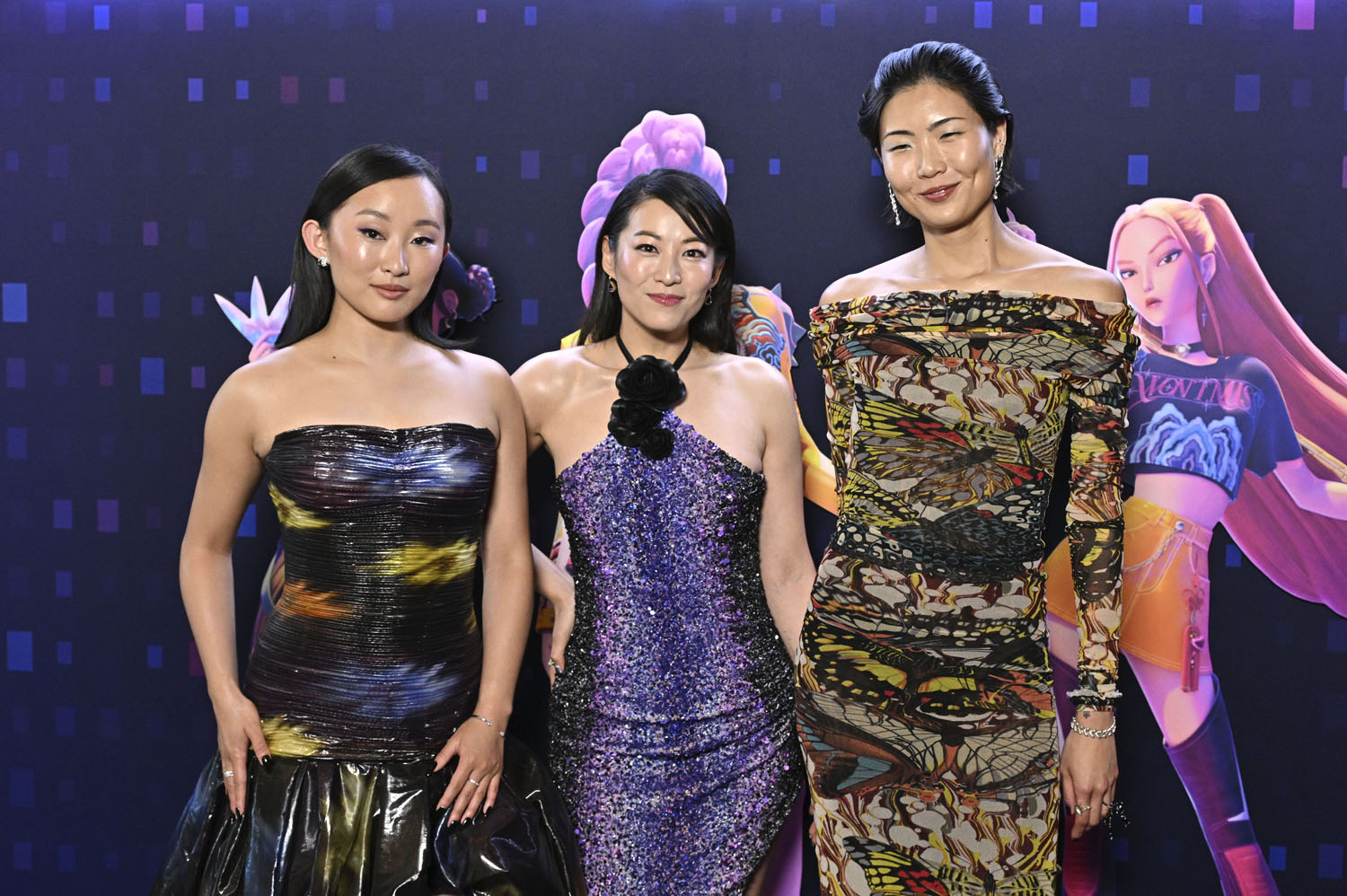 But here are the leads: Arden Cho, Ji-young Yoo, and May Hong who play Kpop superstars, band name Huntrix, who are also demon hunters protecting their fans from soul-suckers. Arden is Rumi, May is Mira, and Ji-young is Zoey. You may recognise Ji-young from the series Expats, in which she starred alongside Nicole Kidman.