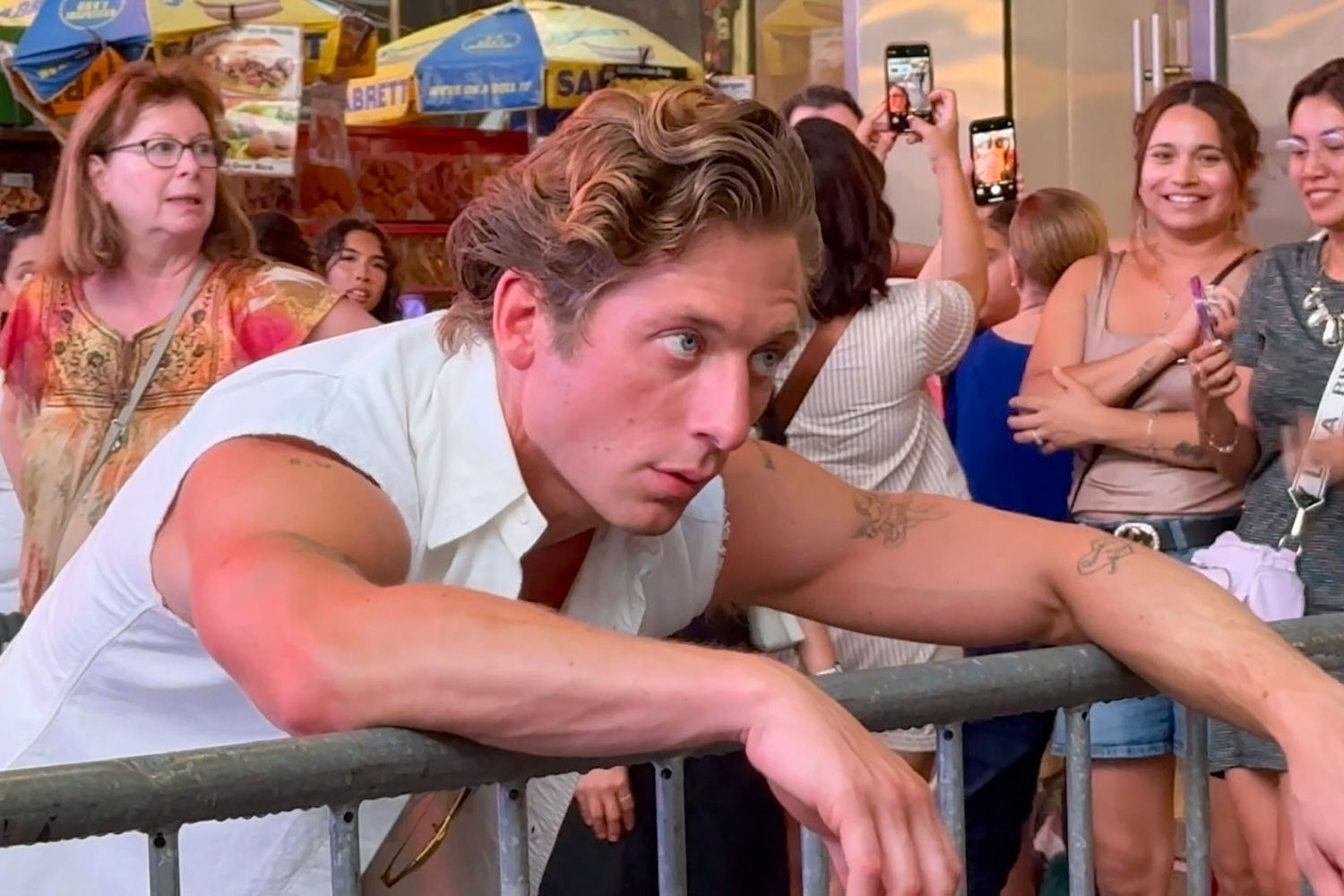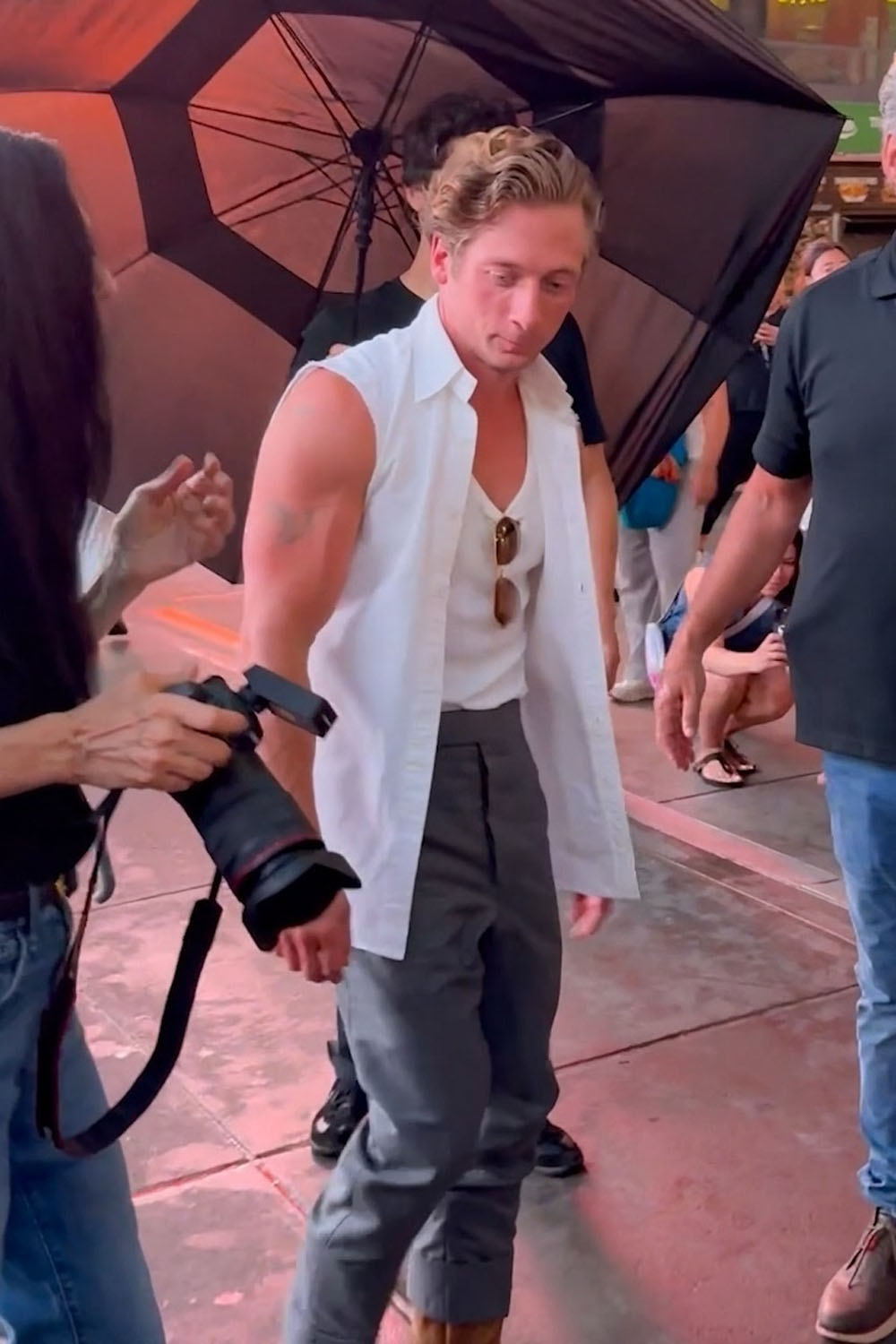 Jeremy Allen White was in New York yesterday for a photo shoot and it definitely wasn’t low-key. They had him blocked off by metal barricades in the middle of Times Square, presumably posing for a magazine ahead of the release of Springsteen: Deliver Me From Nowhere which opens on October 24.