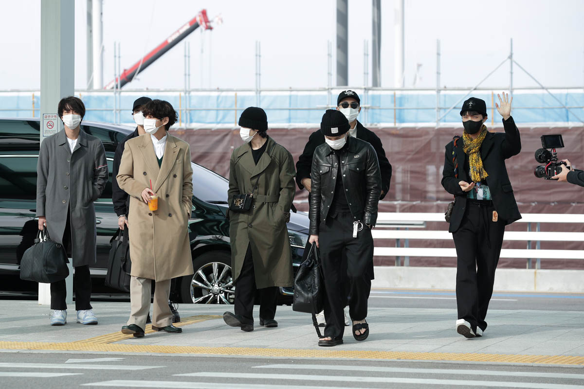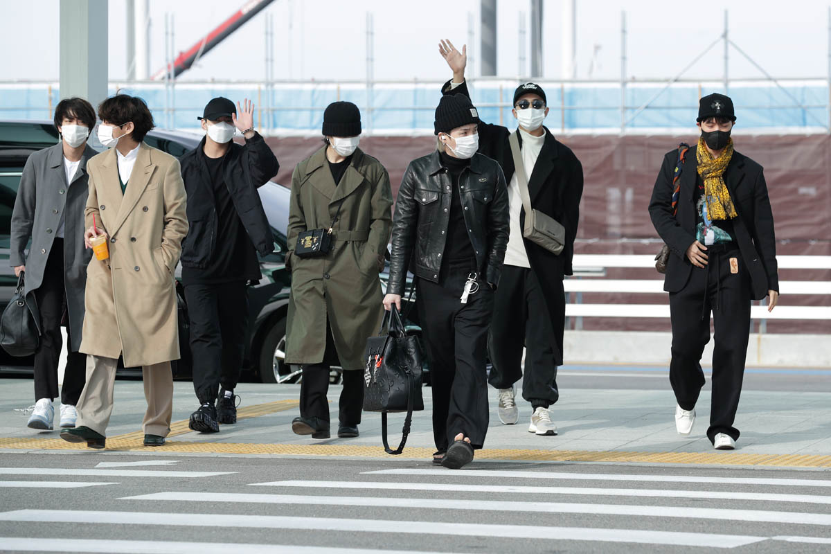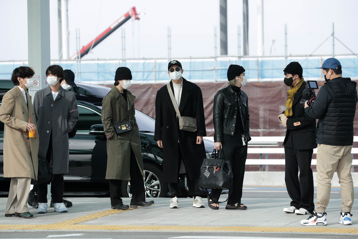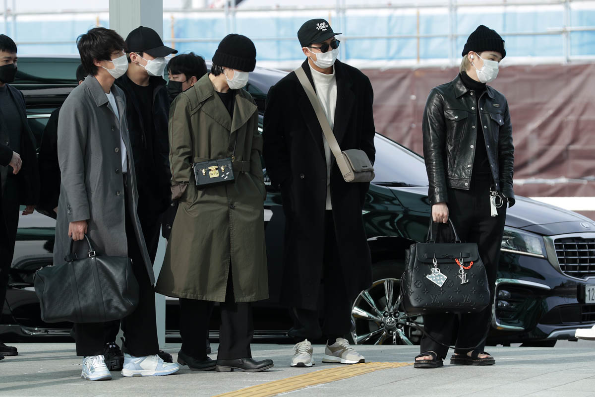 My point is, if you’re a frequent visitor to this site, be ready for incoming BTS content. There’s going to be a lot. And be ready too for …the looks! I mean, these airport outfits alone. The coats, the shoes, this f-cking bag collection they’re flexing, ranging from cross-bodies to totes to duffels…