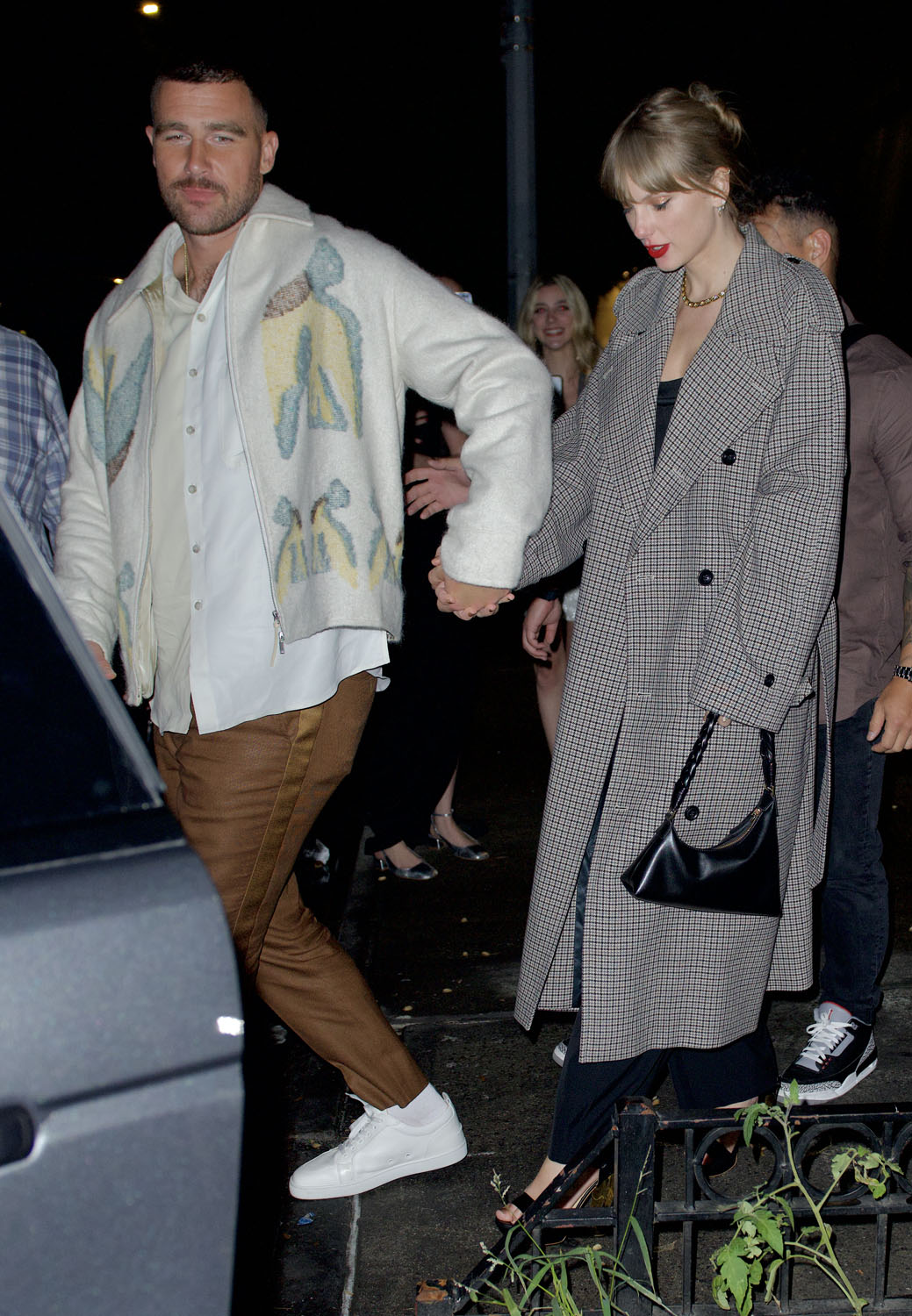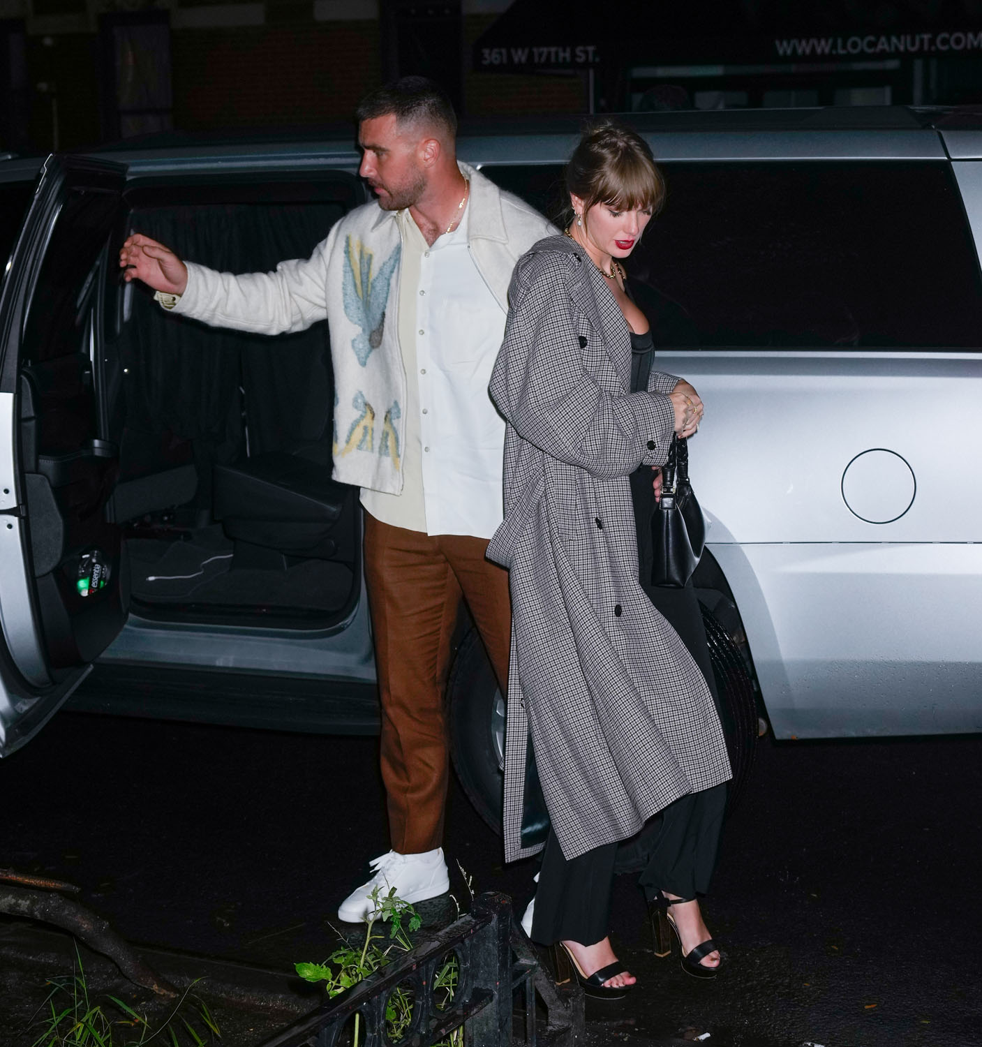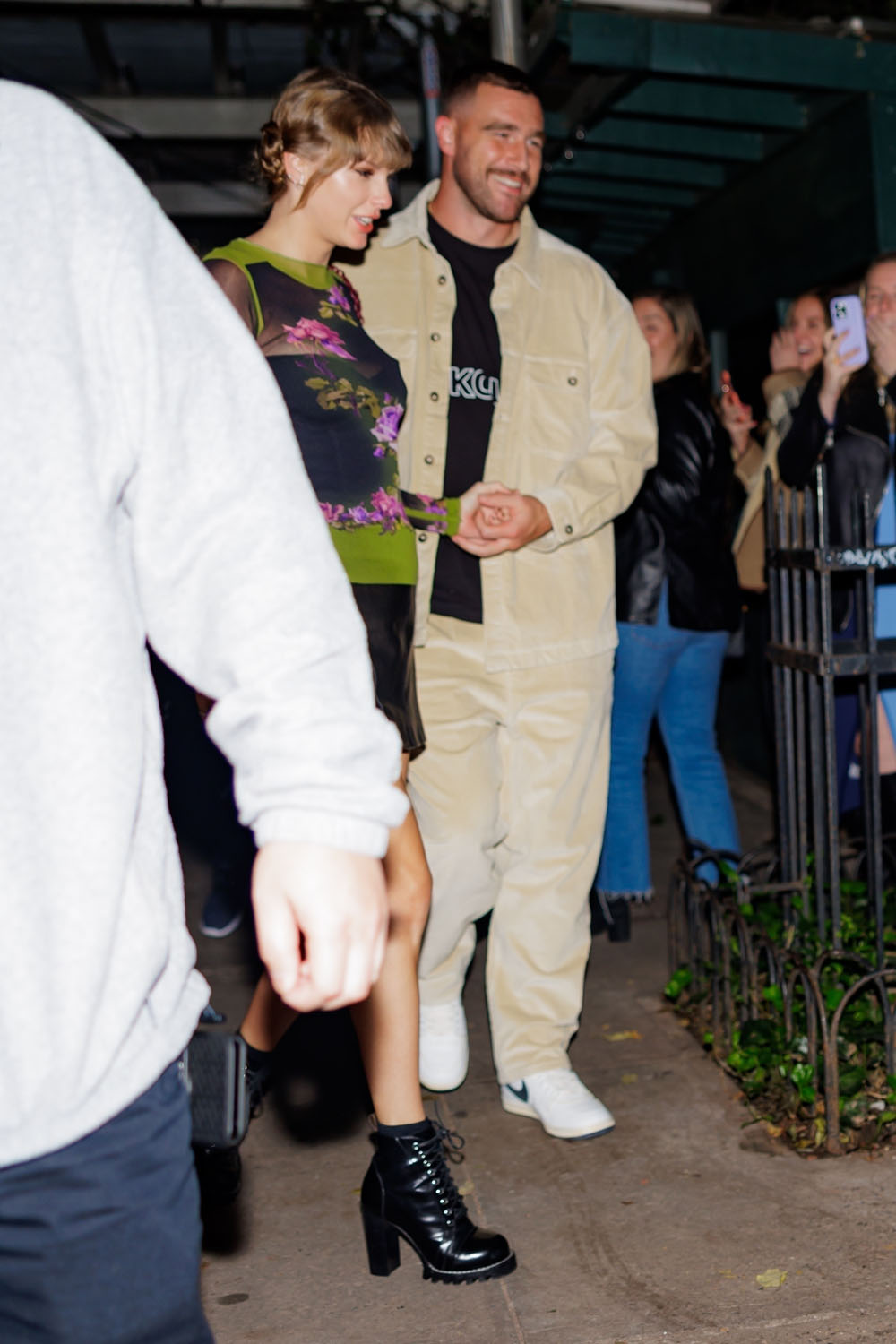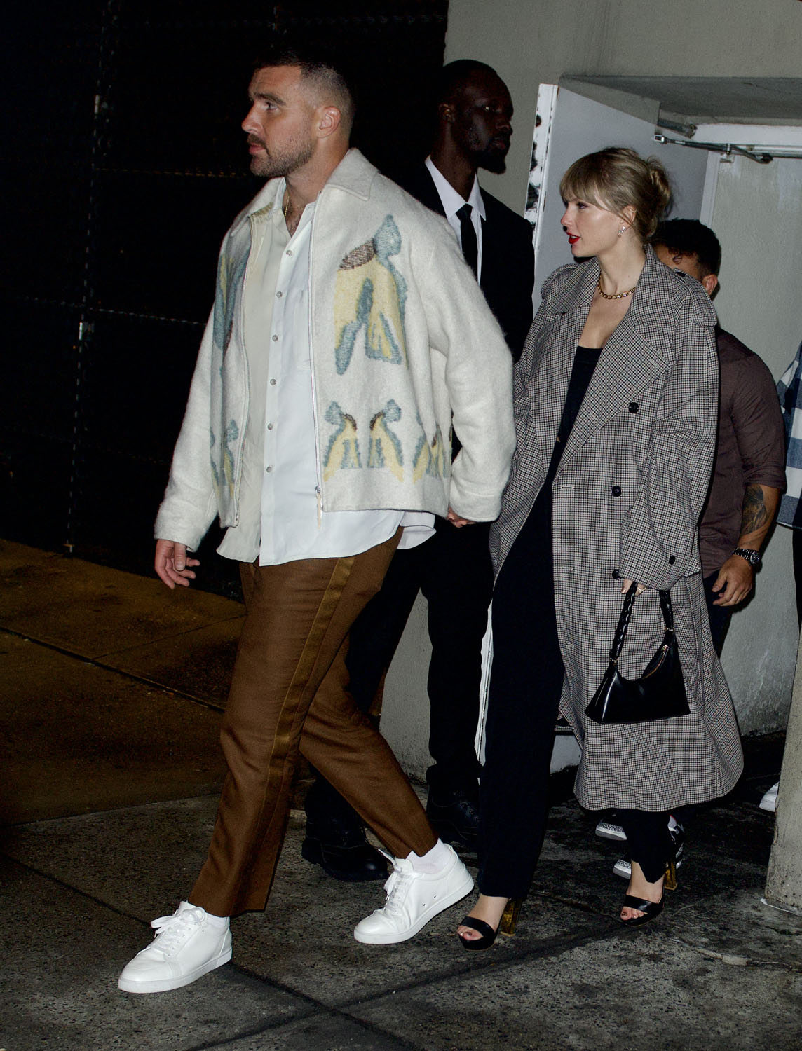 Travis Kelce and Taylor Swift attend the SNL after party in New York, October 15, 2023