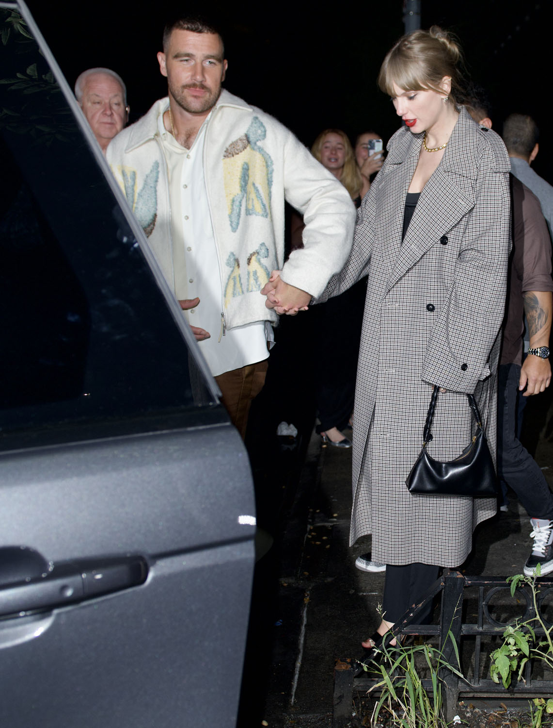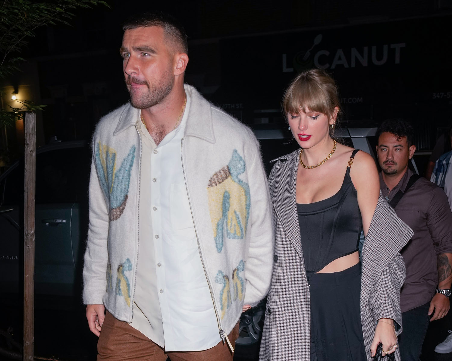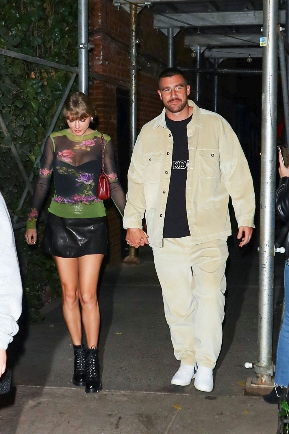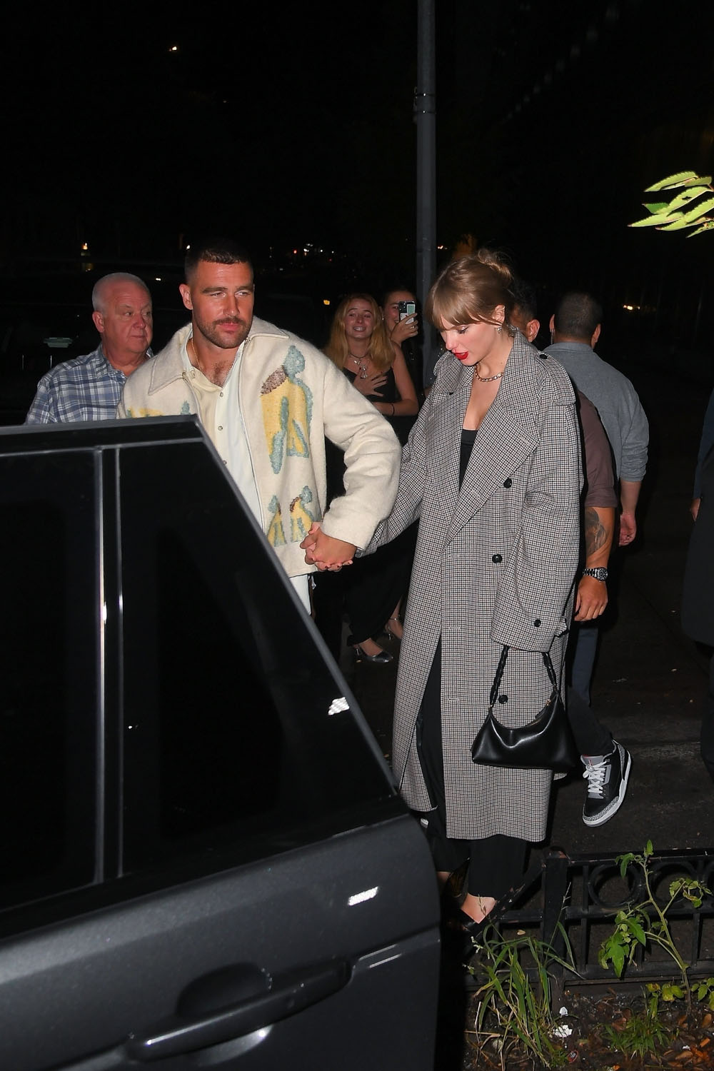 Travis Kelce and Taylor Swift attend the SNL after party in New York, October 15, 2023