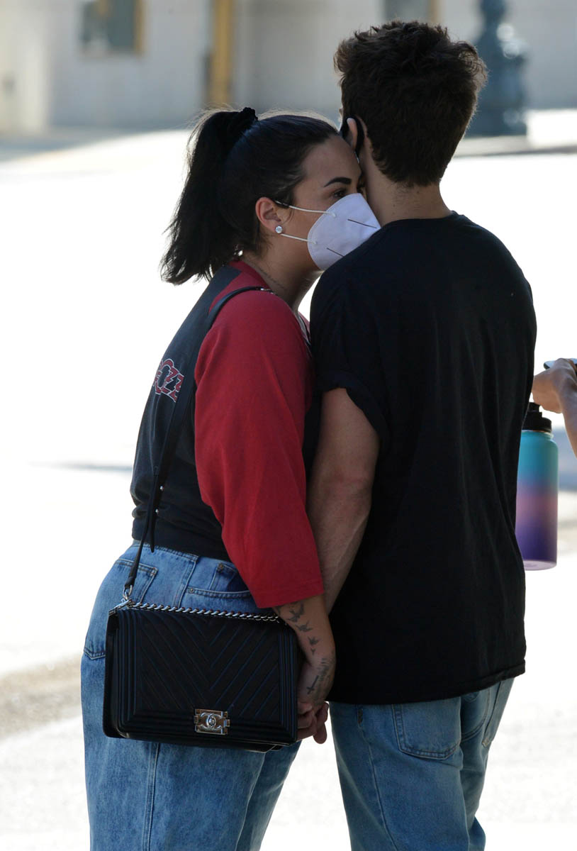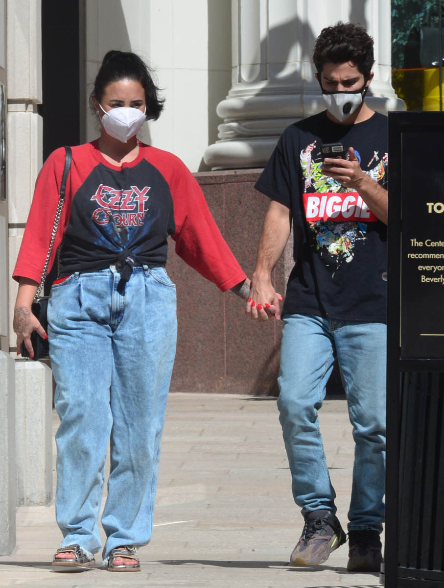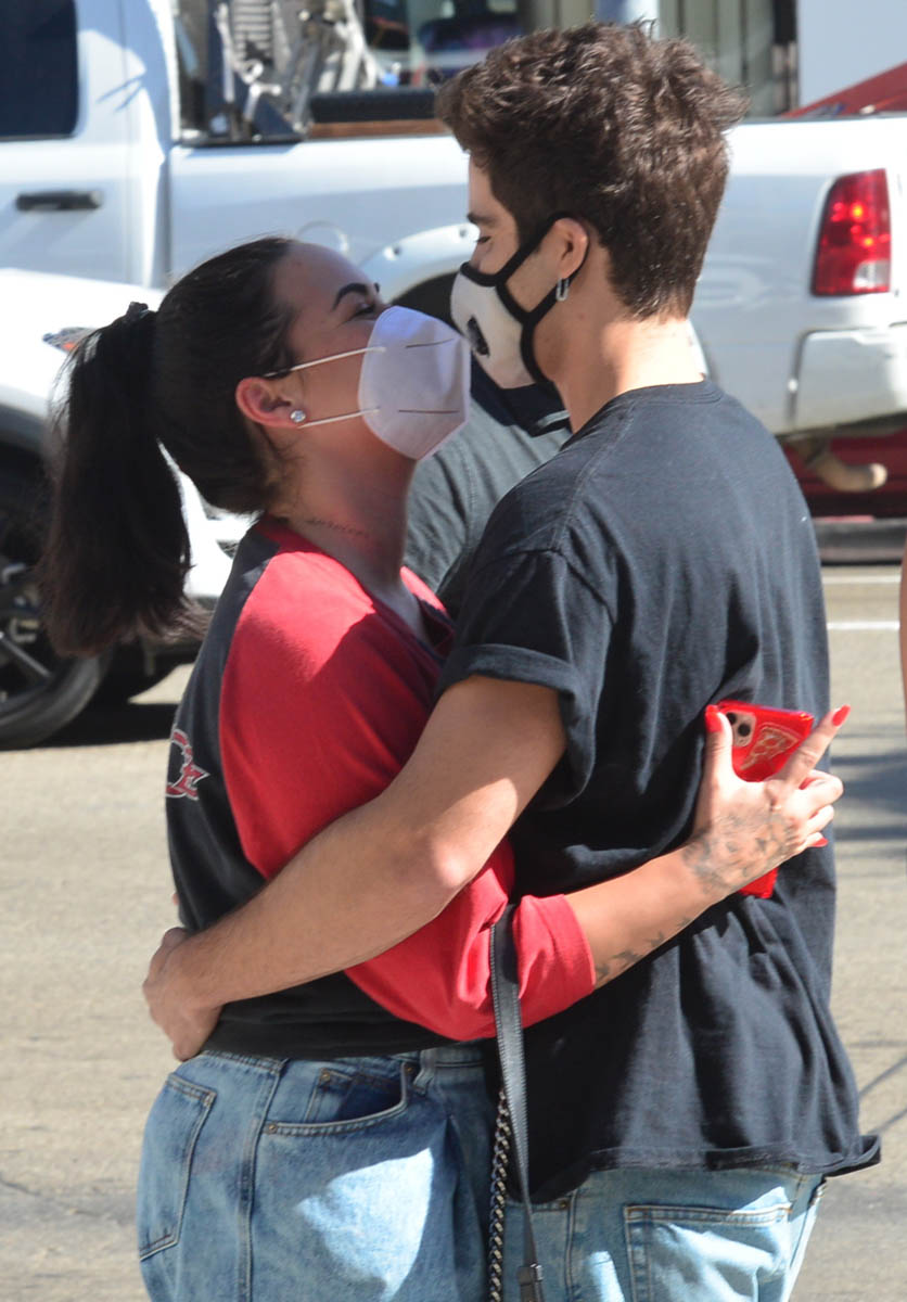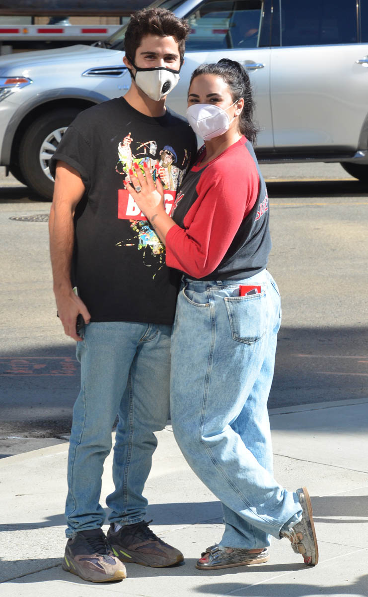 Attached - Demi Lovato and Max Ehrich together in LA the other day.