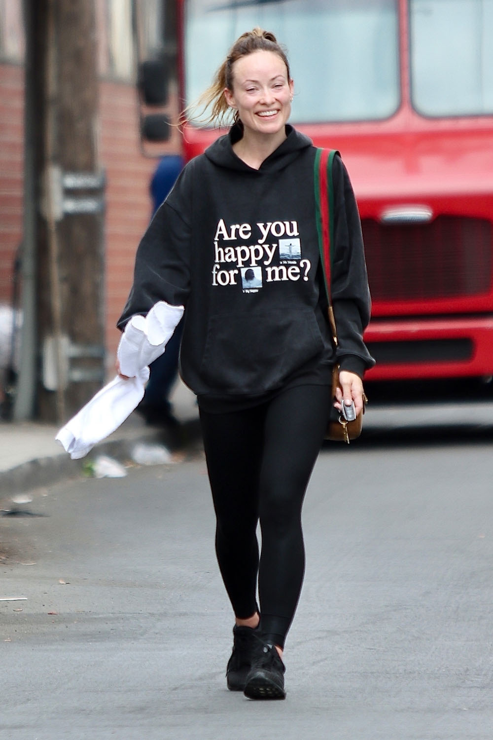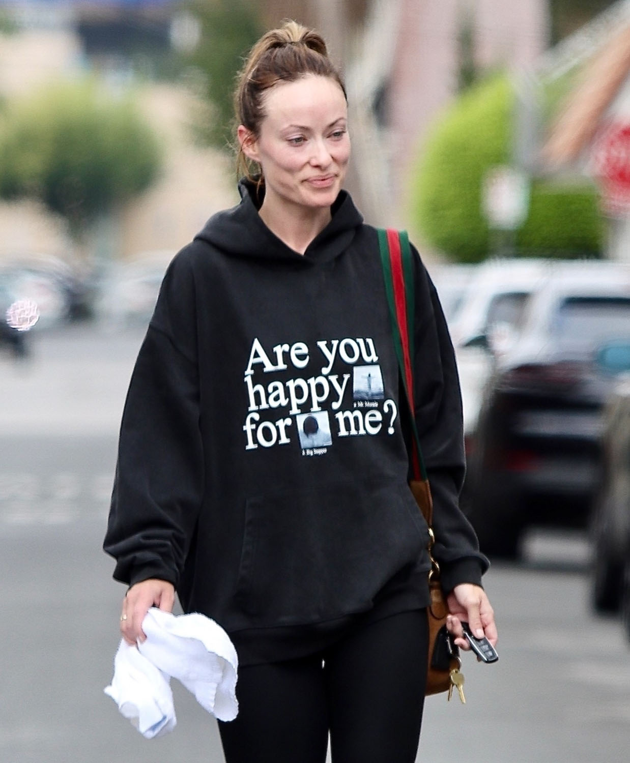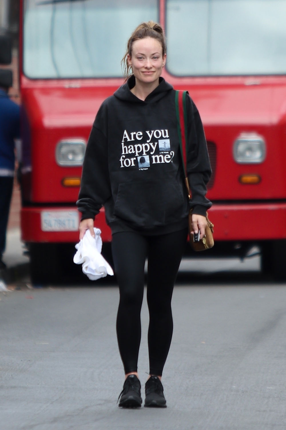 Here’s Olivia leaving the gym yesterday seemingly sending a message with her sweatshirt.