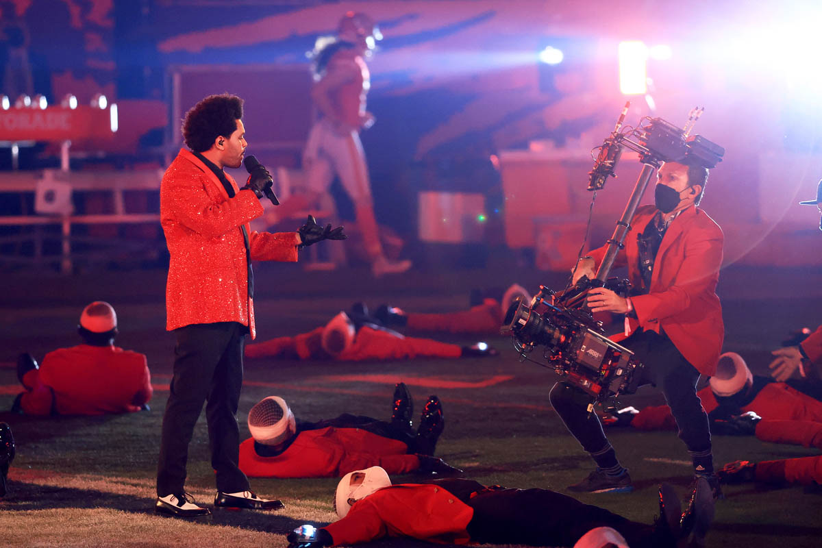 The moment The Weeknd opened his mouth to scream “Tampa Bay,” as he kicked off his Super Bowl LV halftime performance, I thought to myself, I wonder who’s responsible for his audio levels because they’re about to lose their job. As he sung the first few bars of “Starboy,” things didn’t get much better for me so I can only imagine how people who weren’t already familiar with the lyrics were feeling. Why was his mic so low? He’s a vocalist and yet there are points where he’s belting a note and it’s barely punching above the instruments and cheering crowd. There were points when his face was right in front of the camera lens and I questioned if we were hearing him through the mic on the camera as opposed to his microphone. But at least while the sound technician was MIA, the camera people were present and on their game, because that steadicam shot used in the last few seconds of his performance is just *chef’s kiss*.