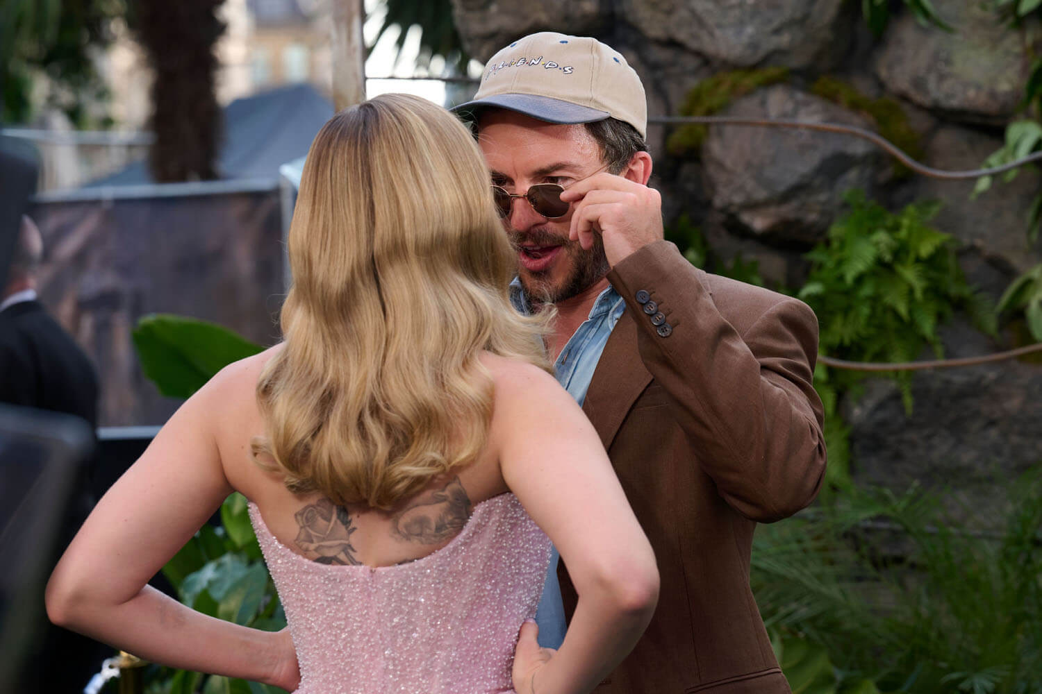 It’s also a summer of slutty little…Friends hats? He’s wearing a Friends hat at the premiere. Full on 90s nostalgia! Jonathan Bailey seems like a lot of fun. To wit, what is he saying to ScarJo? Are they talking about his slutty little sunglasses?