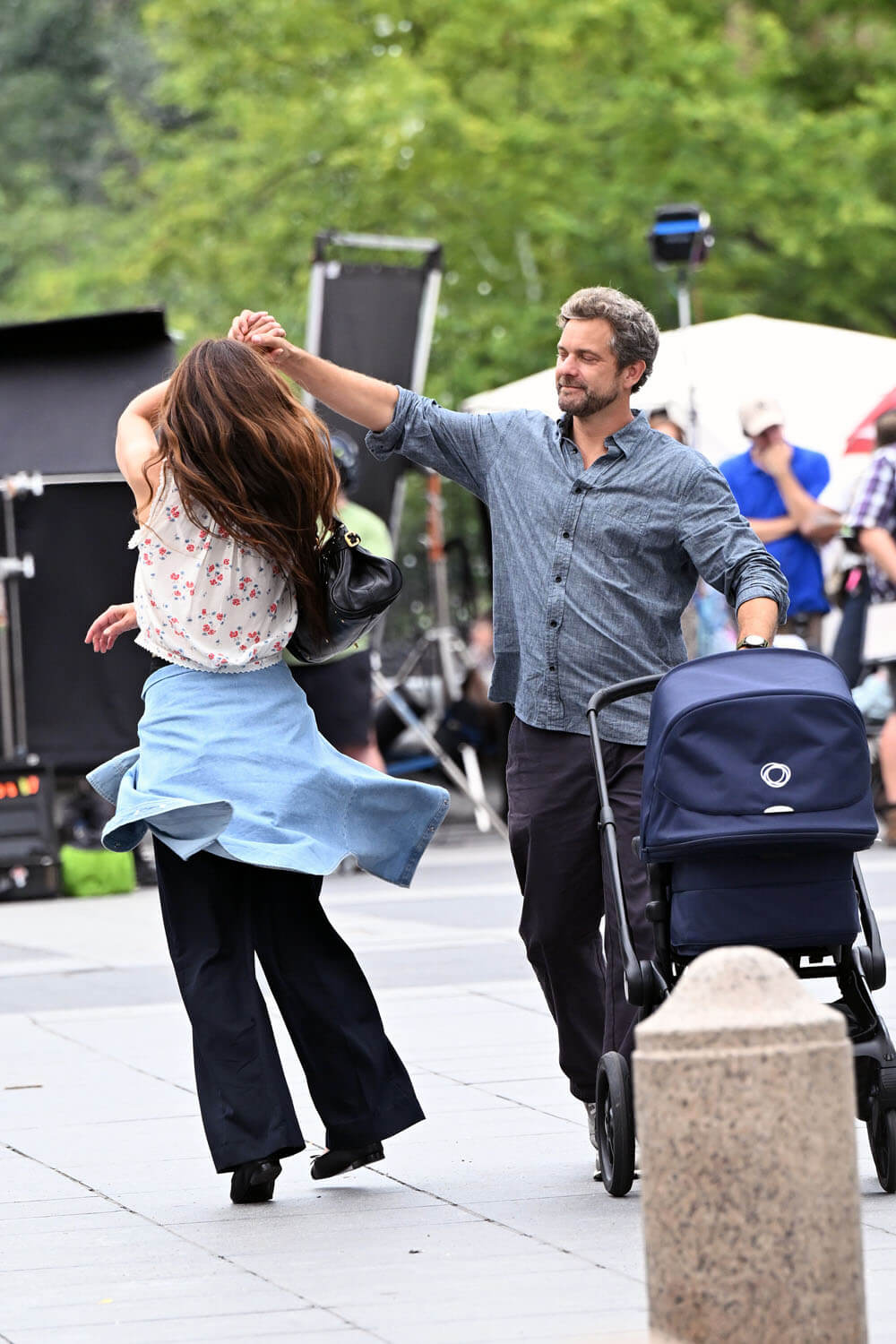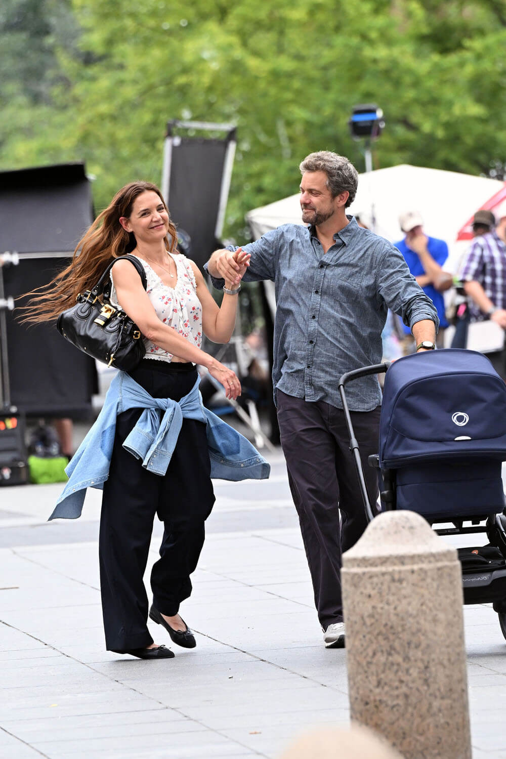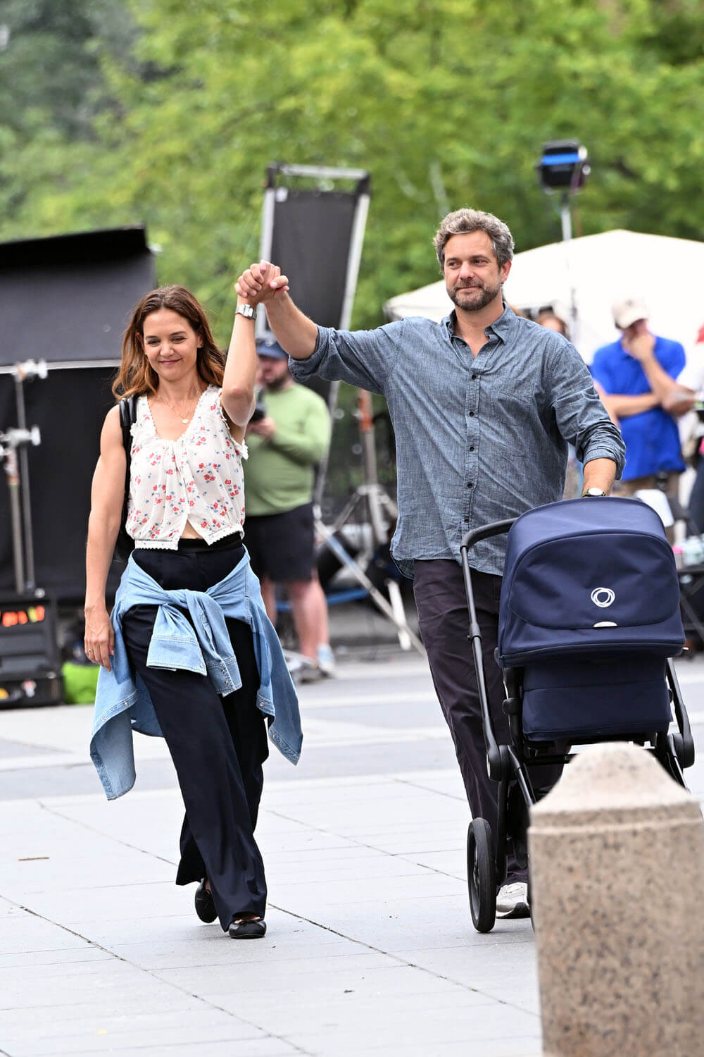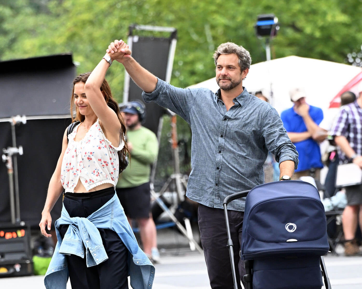 Katie Holmes and Joshua Jackson continued to film Happy Hours in New York this weekend and it’s been happy hour for us Xennials who’ve been waiting 25 years for this to happen but not really believing that it could happen. Even though it’s not really happening, at least not officially, at least not yet. But not never because we’ve made it this far! And they’re working together and playing a couple and pushing a baby stroller and holding hands…