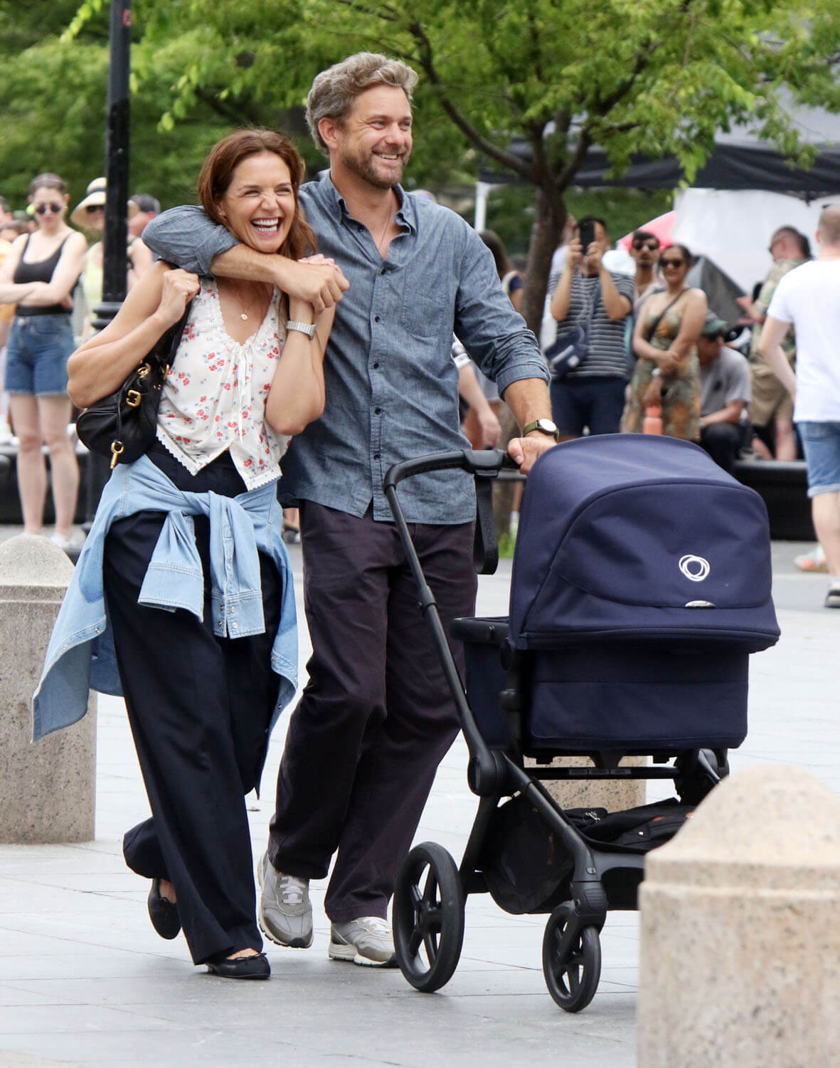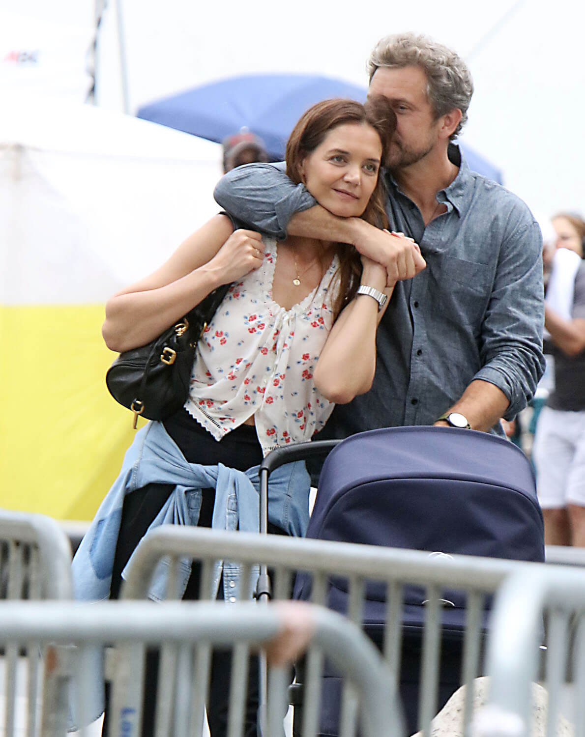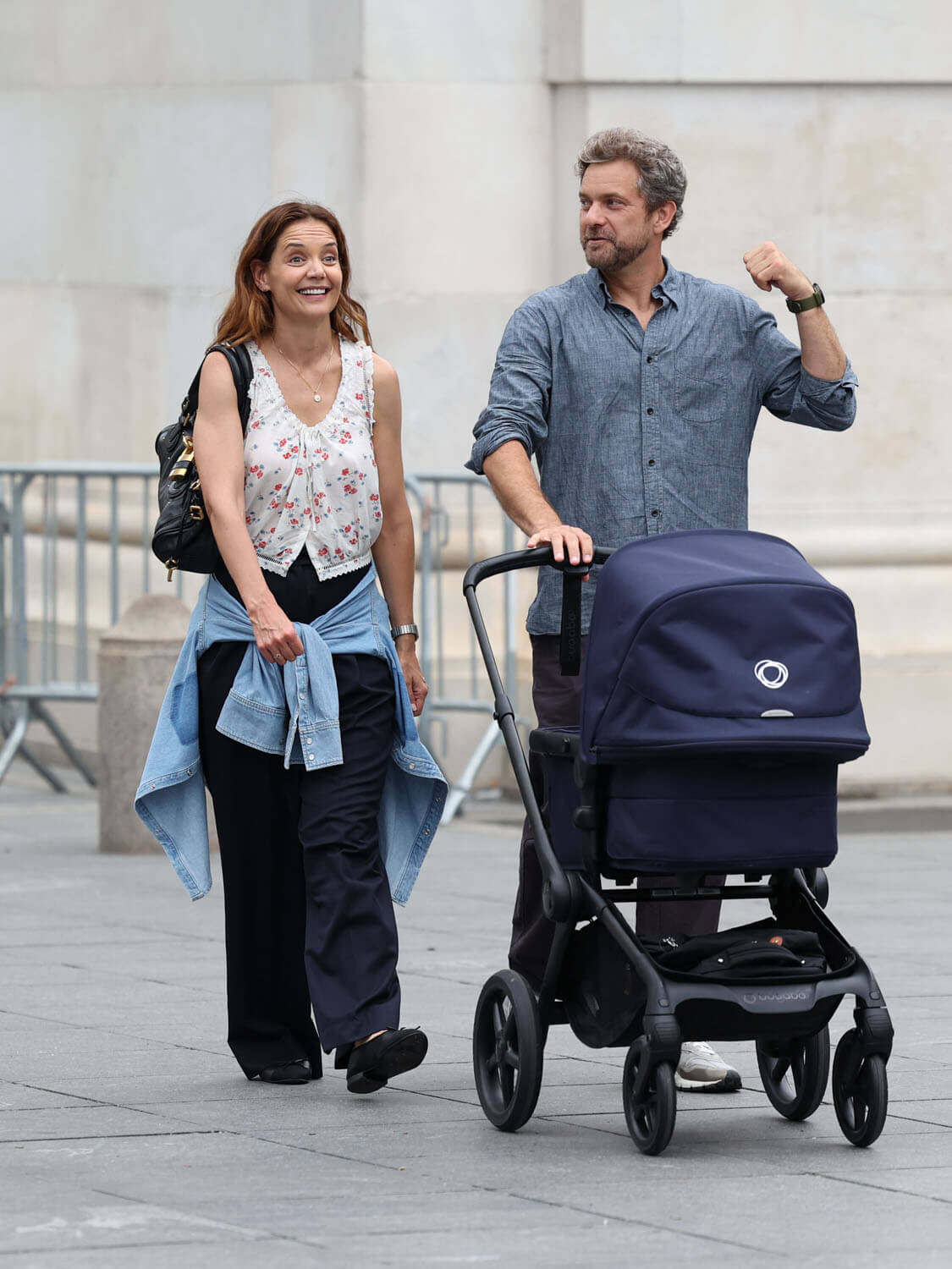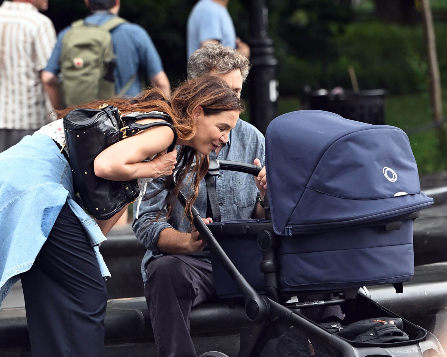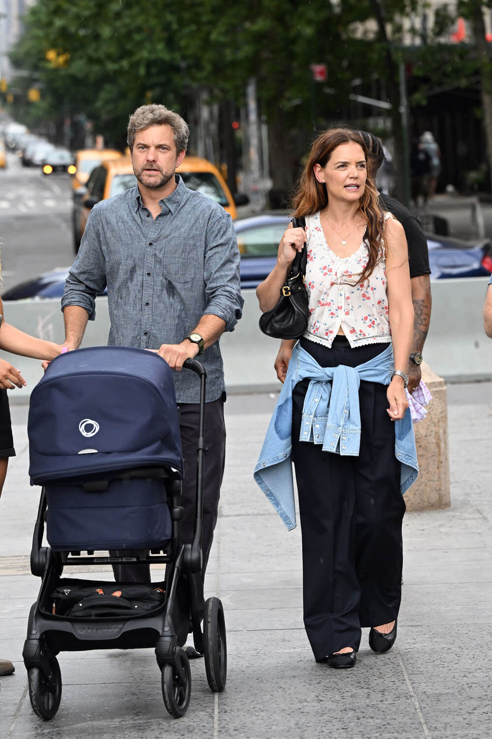 Katie Holmes and Joshua Jackson continued to film Happy Hours in New York this weekend and it’s been happy hour for us Xennials who’ve been waiting 25 years for this to happen but not really believing that it could happen. Even though it’s not really happening, at least not officially, at least not yet. But not never because we’ve made it this far! And they’re working together and playing a couple and pushing a baby stroller and holding hands…