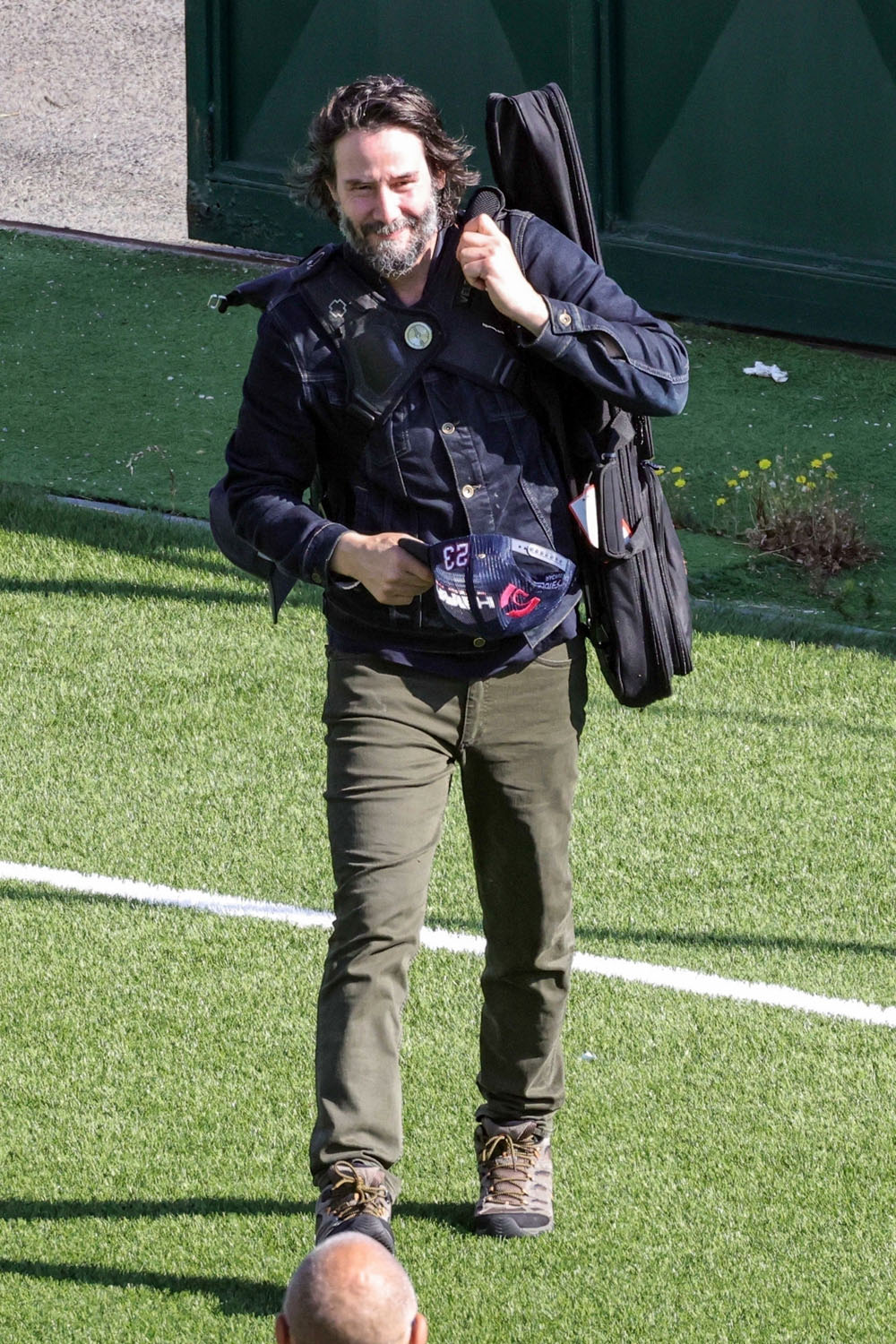 Keanu Reeves and his partner Alexandra Grant were in Italy last weekend for the Motorcycling Grand Prix. He’s a motorcycle enthusiast, has been riding for decades, not just for the glamour factor, and so passionate about it that he co-founded his own company, ARCH Motorcycle, back in 2011. That’s what he’s repping with his hat in these new shots of him leaving Capri via helicopter…pretty sure he’s not heading to Venice for that wedding. Not that he’s the kind of person who would declare open mockery on those people but it’s about how he chooses to spend his time and when and where he engages with his own celebrity and other celebrities.