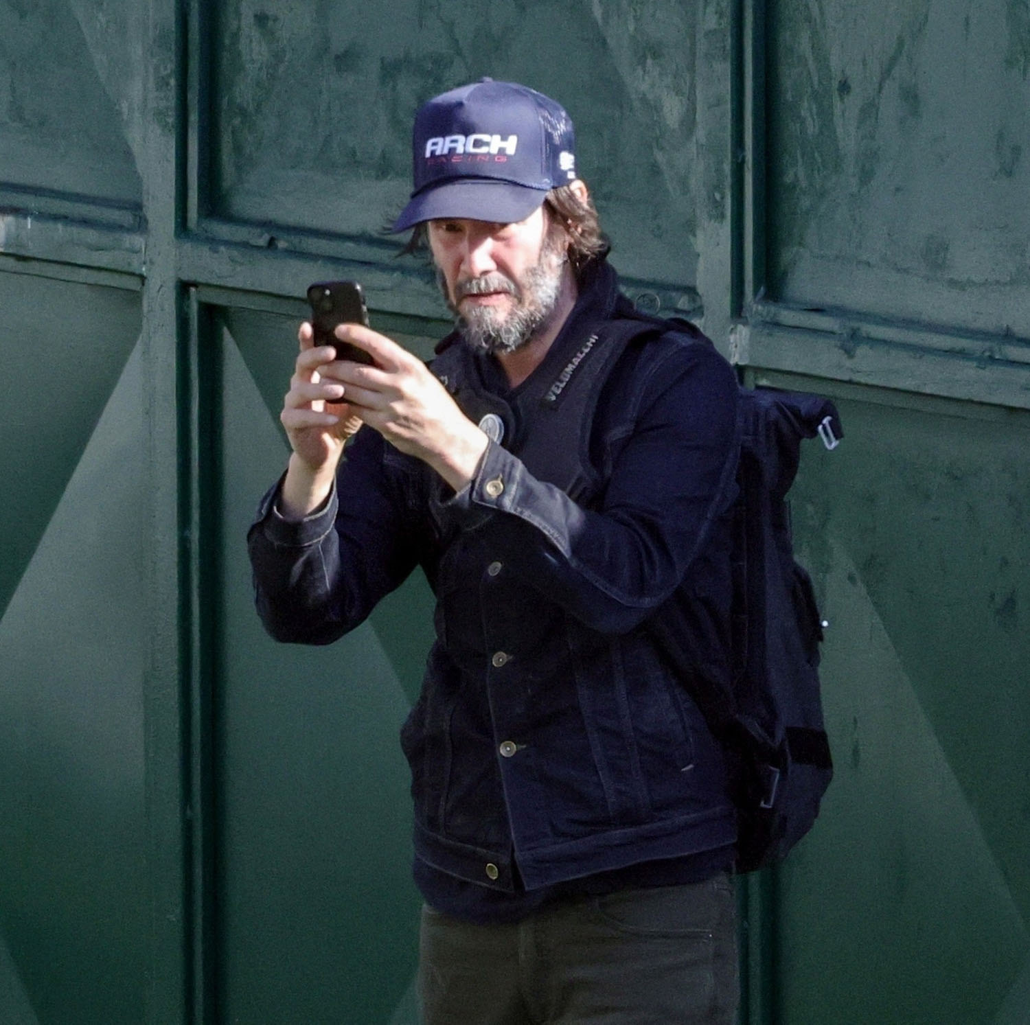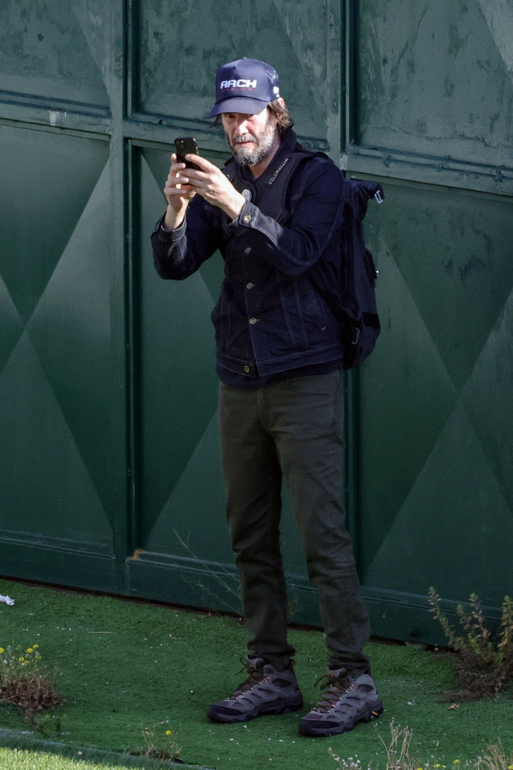 Anyway, there’s a photo in this set of Keanu taking a photo with his phone. Not sure what he’s shooting here but it’s probably not a selfie, LOL. I wonder how often Keanu takes selfies. Does he ever take selfies? Maybe not the way most of think of selfies but, like, when he and Alexandra are on a bike trip and no one’s around and there’s a mountain behind them, do they pull out the phone and take a picture just for their private collection, never to be shared? Does Keanu have some selfie skills?