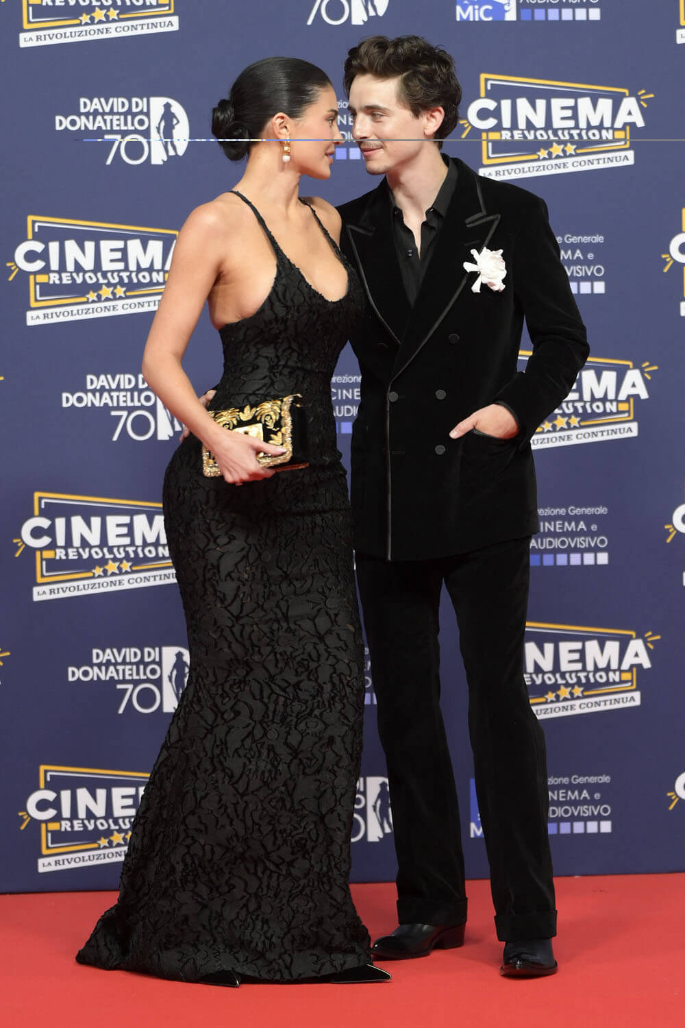 Timothée Chalamet and Kylie Jenner had the opportunity at the start of the week at the Met Gala to make their red carpet debut. He decided instead to stay in and watch the basketball game. Instead, it happened last night in Rome at the David Di Donatello Awards, known as the Italian Oscars, where Timmy was presented with an honorary David for Cinematic Excellence.