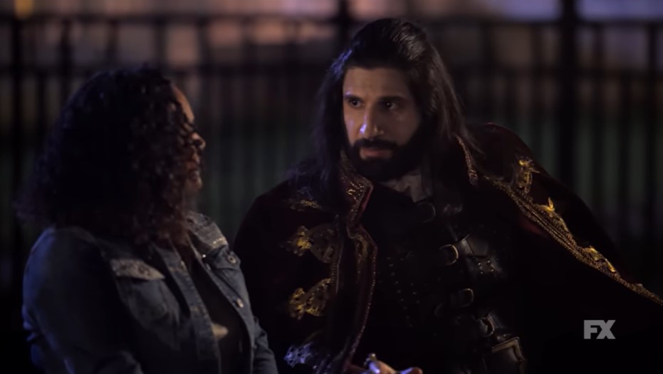 But Laszlo’s deception royally screwed over Guillermo (Harvey Guillen), the ever-faithful familiar of Nandor (Kayvan Novak). Of all the plot lines percolating in WWDITS, I am most invested in Nandor and Guillermo. The Shadows film is absurd, but it has a poignant love story tucked into it, and the show is developing along a similar track with Guillermo and Nandor, giving them a slow burn will they/won’t they subplot. Also, Harvey Guillen and Kayvan Novak are “goes to Disneyland together” level friends. Until I hear otherwise, this is canon for Nandor and Guillermo, too.