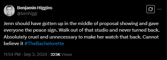 So what were the claims? In conversation with crew members who agreed to speak to Deadline under anonymity, it was alleged that Claire and Bennett failed to foster a collaborative work environment. Only their ideas saw the light of day – which is how we got the heartbreaking moment where former Bachelorette Jenn Tran was forced to rewatch her proposal to Devin Strader despite their relationship not working out and producers desperately trying to put a stop to having her endure that. It was a move ultimately made by Claire, and one that former contestants have called ‘cruel and unnecessary’.