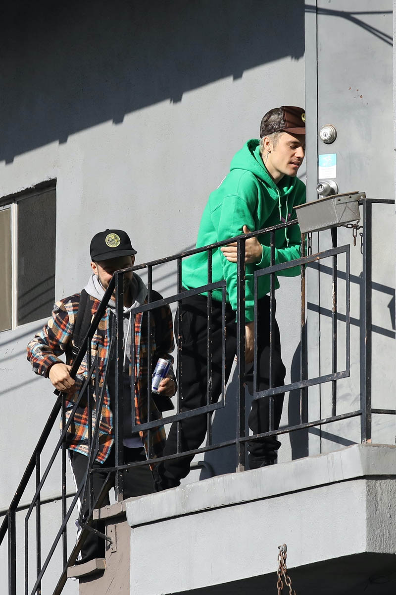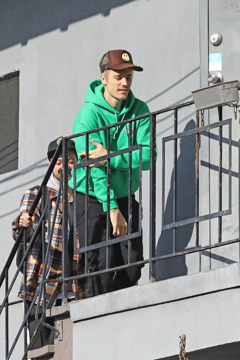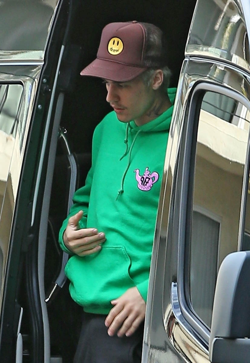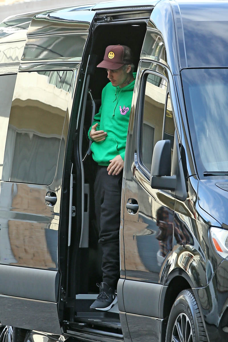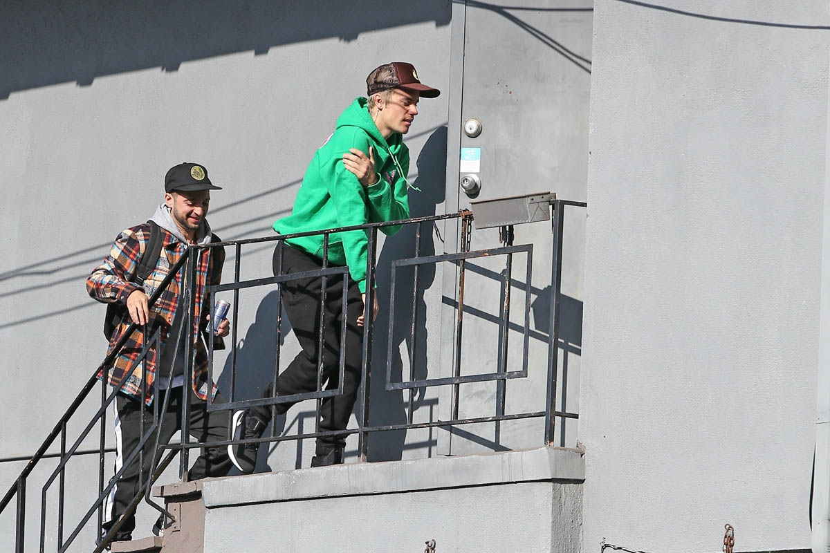 Attached - Justin Bieber arriving at a studio today in LA.