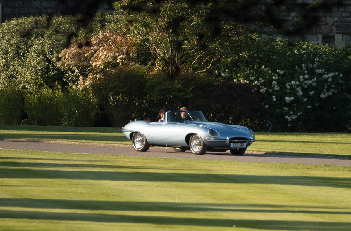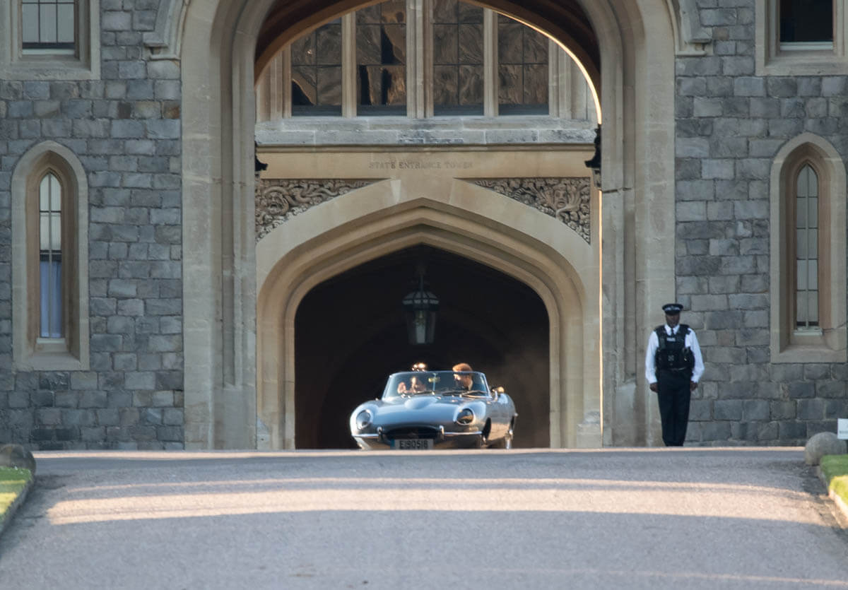 The Duke and Duchess of Sussex depart Windsor Castle for a reception hosted by The Prince of Wales at Frogmore House, in a silver blue Jaguar E-Type Concept Zero. This vehicle was originally manufactured in 1968, and has since been converted to electric power #RoyalWedding pic.twitter.com/hRrxEUlFlJ— Kensington Palace (@KensingtonRoyal) May 19, 2018