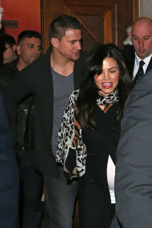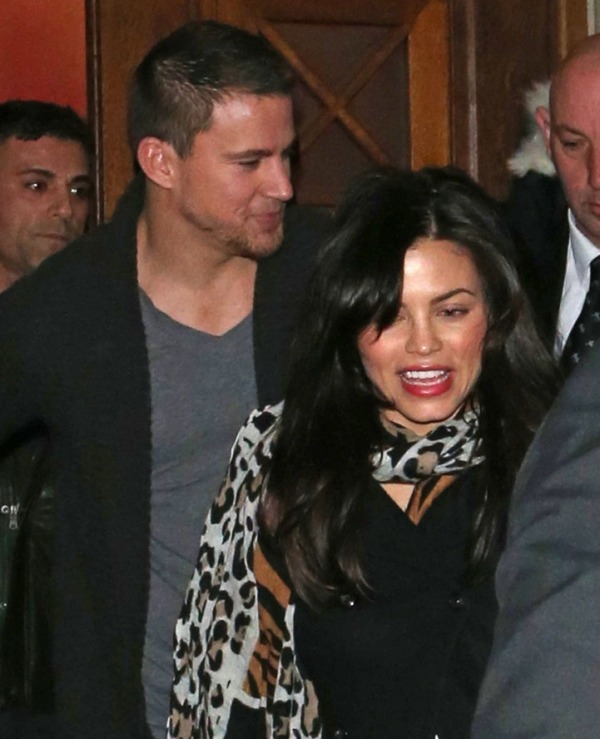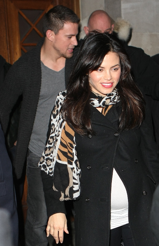 Here’s Channing Tatum with his wife Jenna Dewan (I recently just learned it’s pronounced Dew-inn, rhymes with Ewan, and not Duh-wann) last night in London on promotion for GI Joe which is going head-to-head against The Host this weekend. More thoughts on this later.
