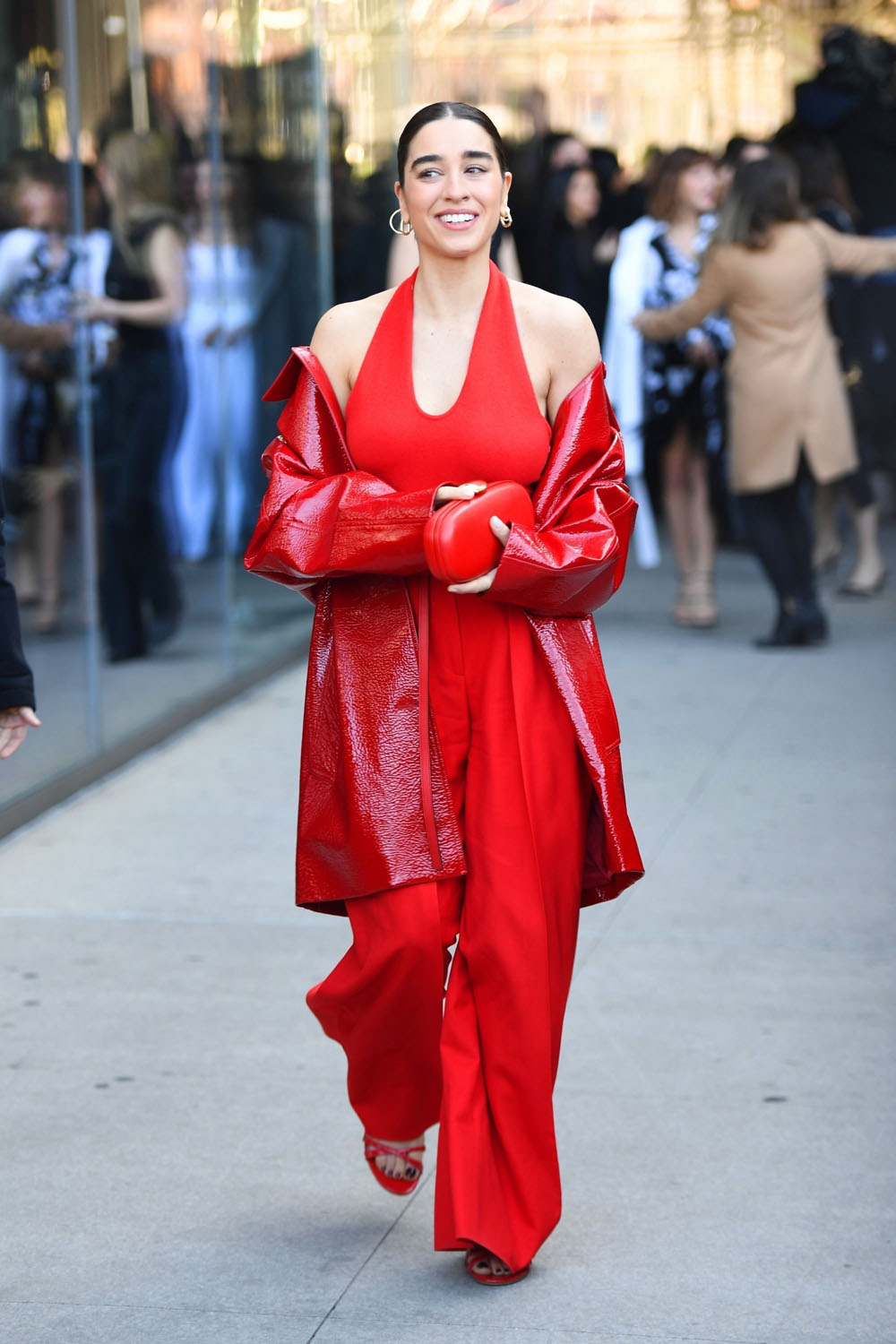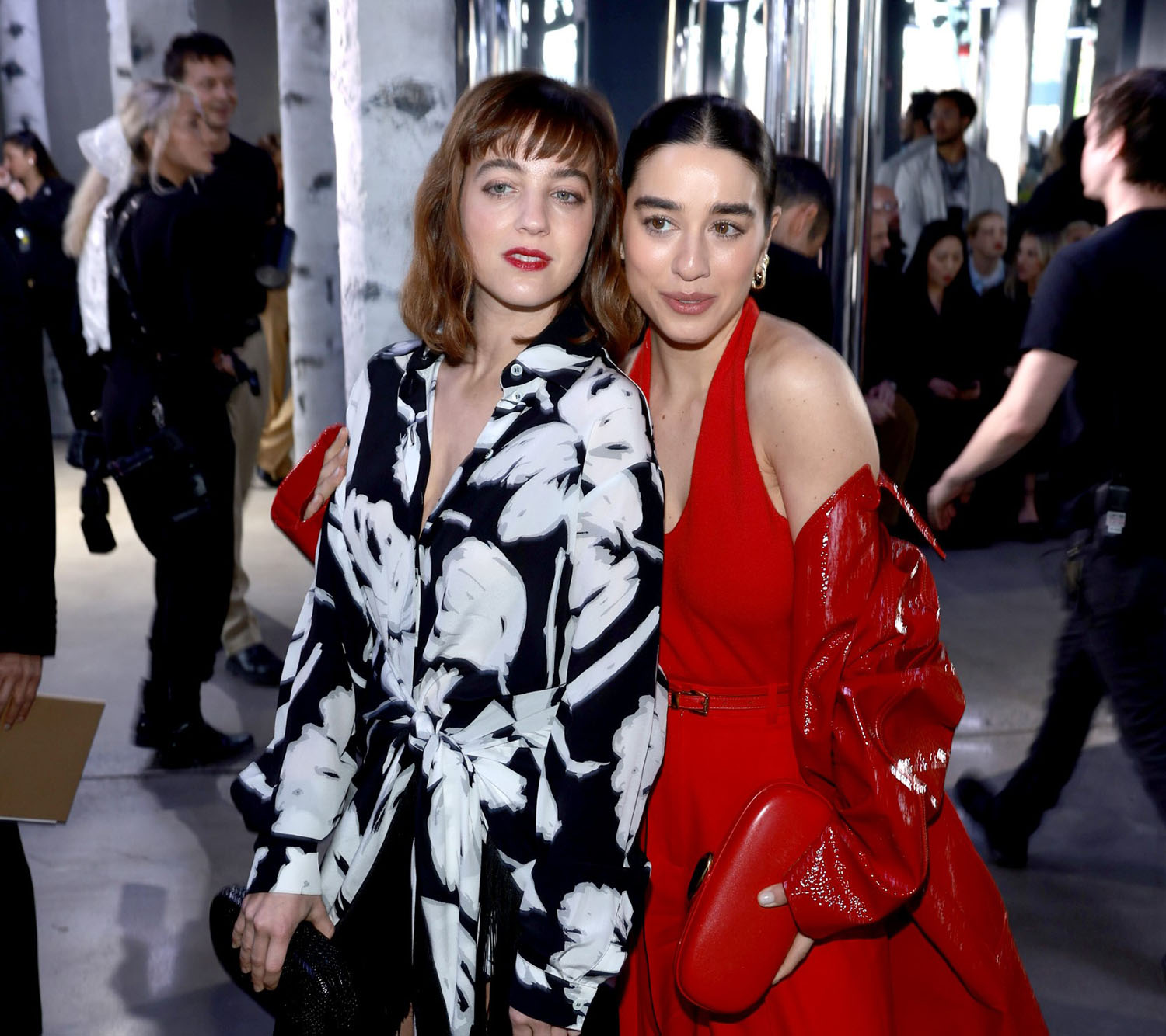 Simona’s wearing red to match Lucia’s provocative energy and Beatrice with the feathers and the flapper hair and makeup is kinda serving Mia’s lounge singer vibe? It’s perfect. So perfect. And I hope that the similarities don’t end with the clothing. I hope, in some way, they f-ck over a rich pervy fashion asshole at some point during their trip. And then tell their story to Jessica Pressler for a piece in The Cut. And that becomes its own movie.