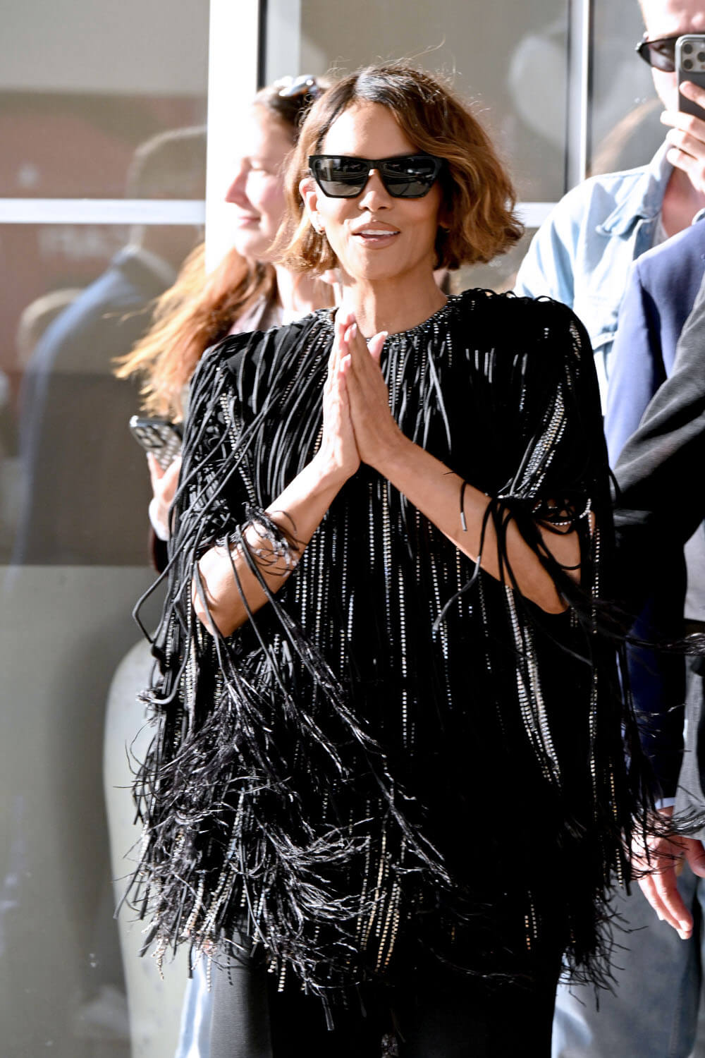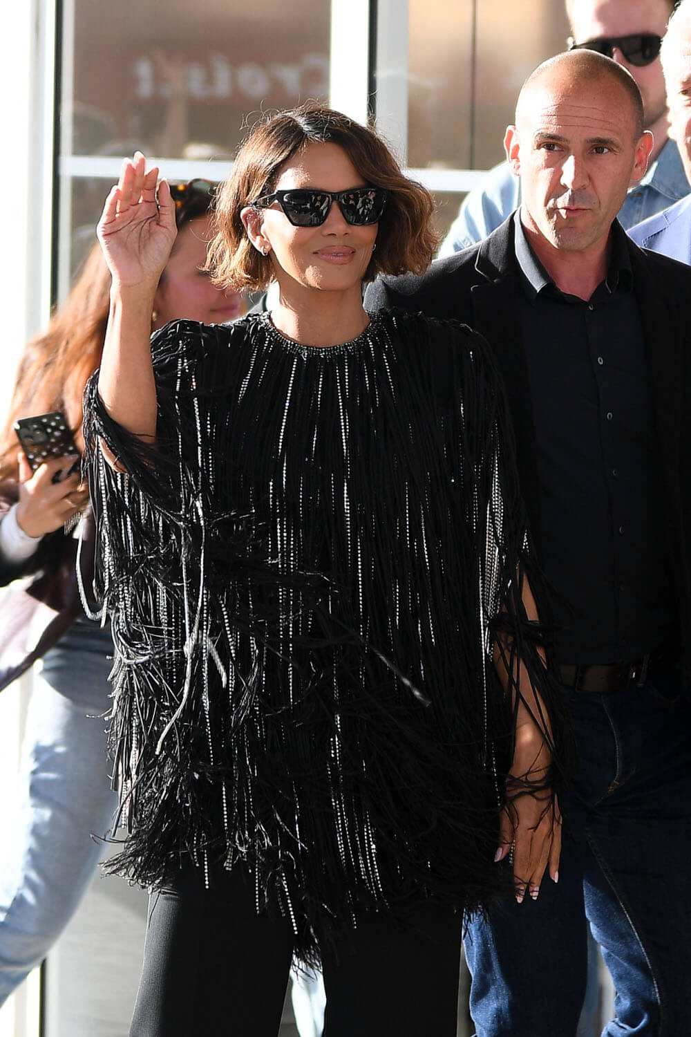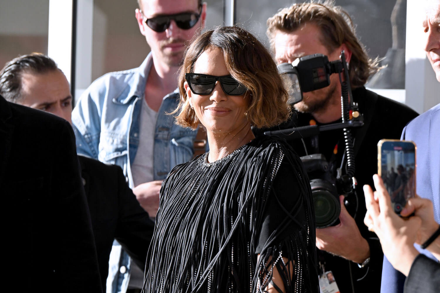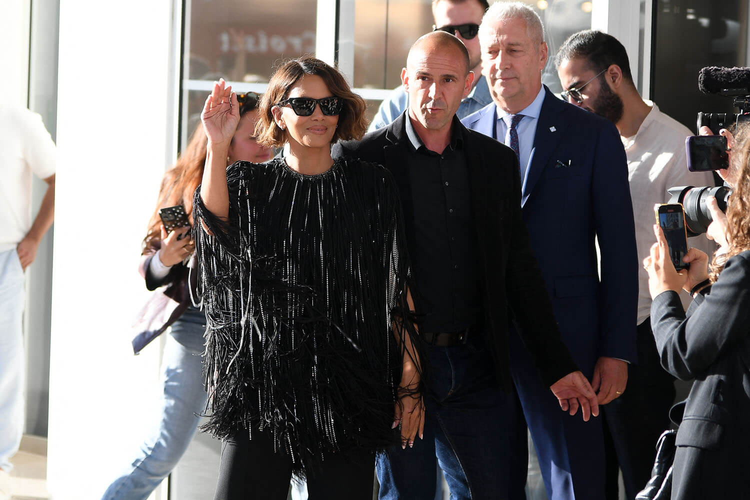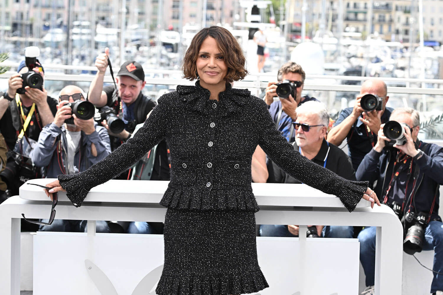Halle Berry is on the Cannes jury this year and she arrived a few days ago. Here she is at the Hotel Martinez yesterday, one of the festival hotspots and where jury members often stay because of its location on the Croisette and its proximity to the Palais where they have to be every single night and, often, during the day. She also joined the other members of the jury, led by Juliette Binoche today for the press conference. And, of course, tonight she’ll be at the opening ceremony.