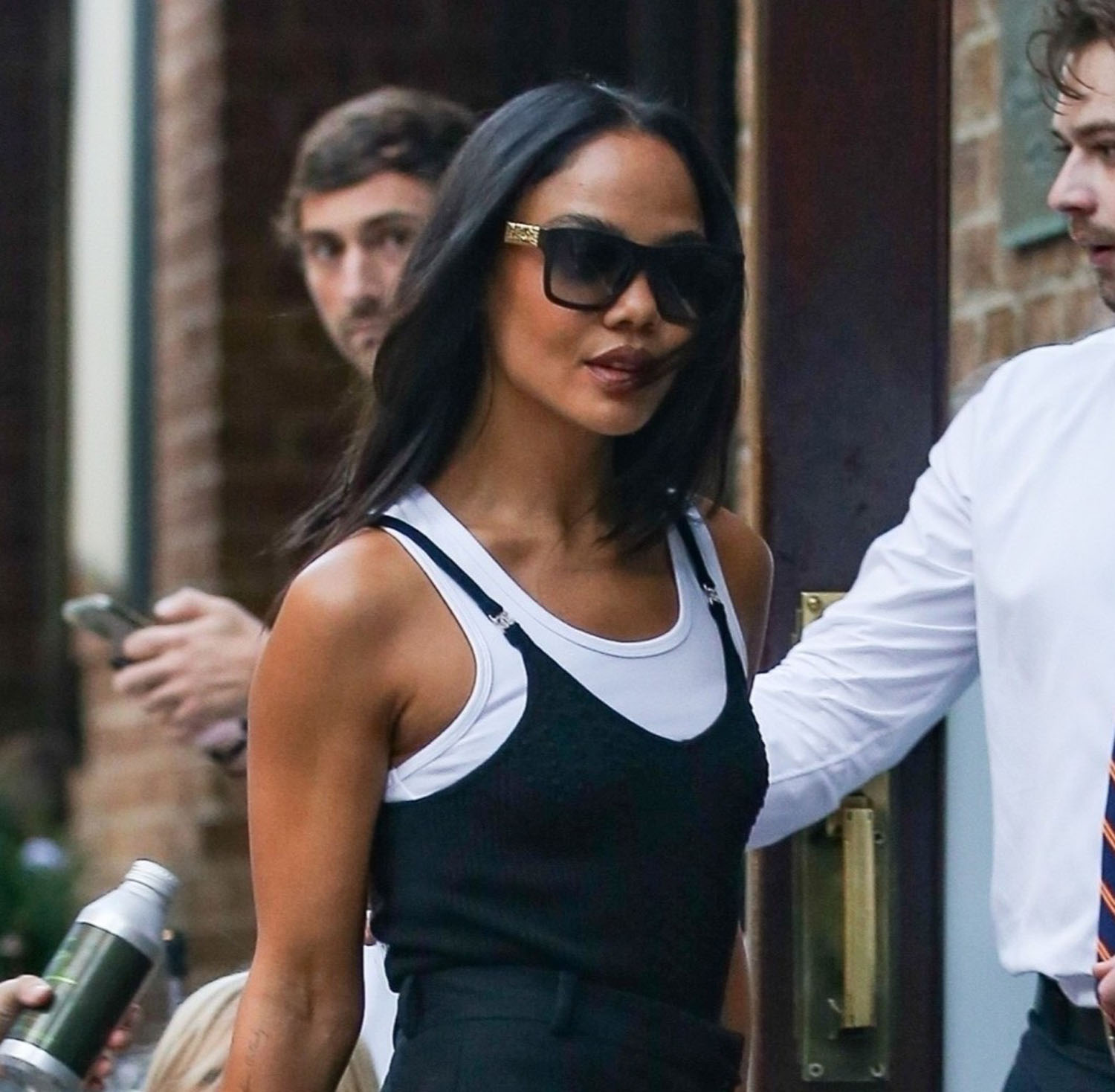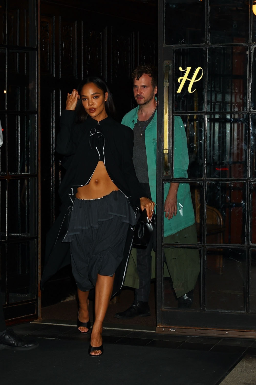 Tessa Thompson has been outside this week, including yesterday which involved multiple wardrobe changes. First, she was seen heading into her hotel in a pair of sleek trousers, and then at night she was seen stepping out with her boyfriend, Brandon Green (son of British almost-billionaire Sir Philip Green, and Emma Watons’s ex. Is he the boy version of Kaia Gerber?).