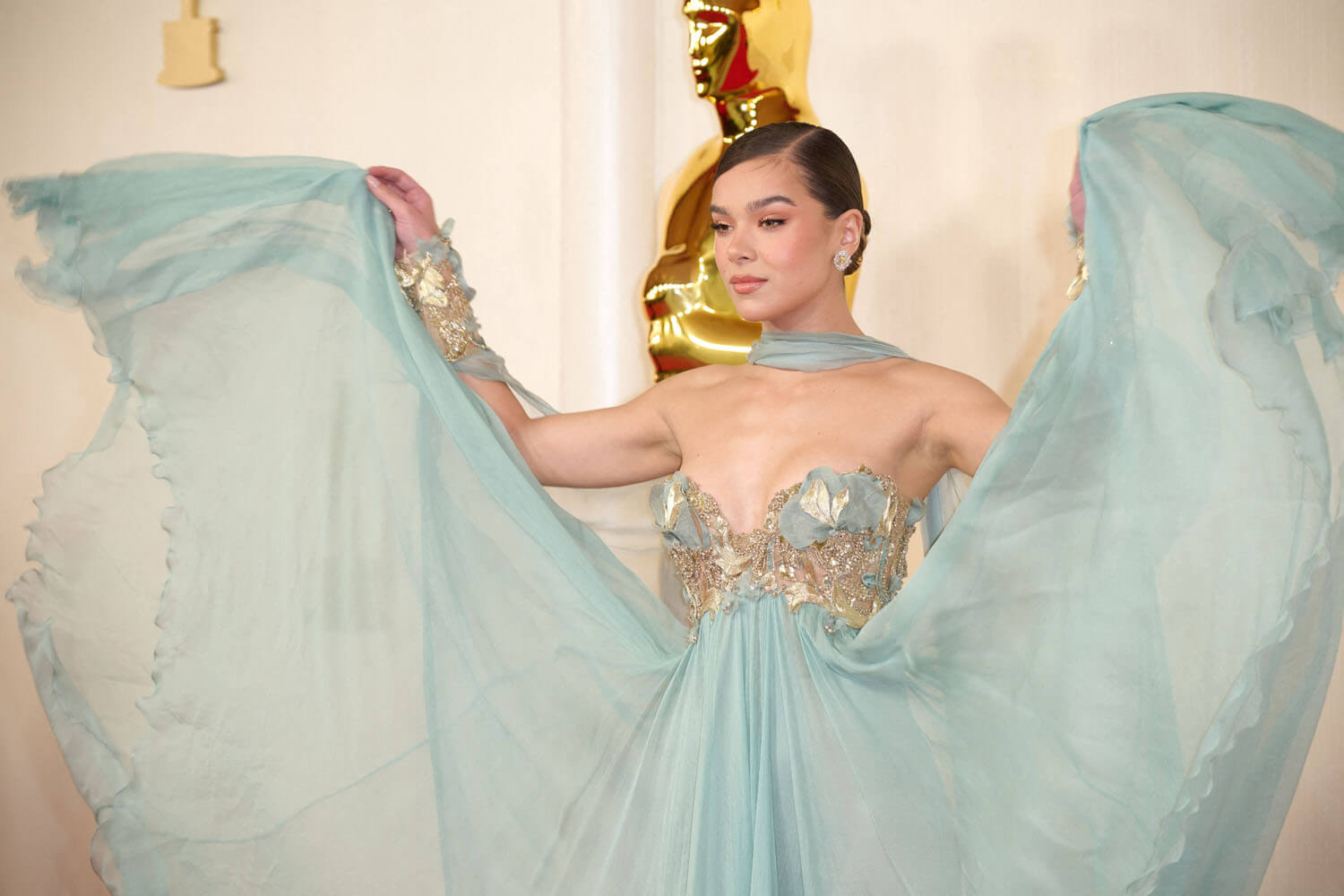 I mean, is any color sky blue now? Is Hailee Steinfeld’s seashell gown sky blue? Florence Pugh’s fashion robot dress? Anya Taylor-Joy’s modern interpretation of the legendary Dior Junon/Venus gowns which is DEFINITELY gray and not sky blue? IS it sky blue?! Anya Taylor-Joy went to the Vanity Fair afterparty dressed like Black Swan—is THAT sky blue? Also at Vanity Far Lupita wore a black sequined gown with purple and green bits, IS THAT SKY BLUE???