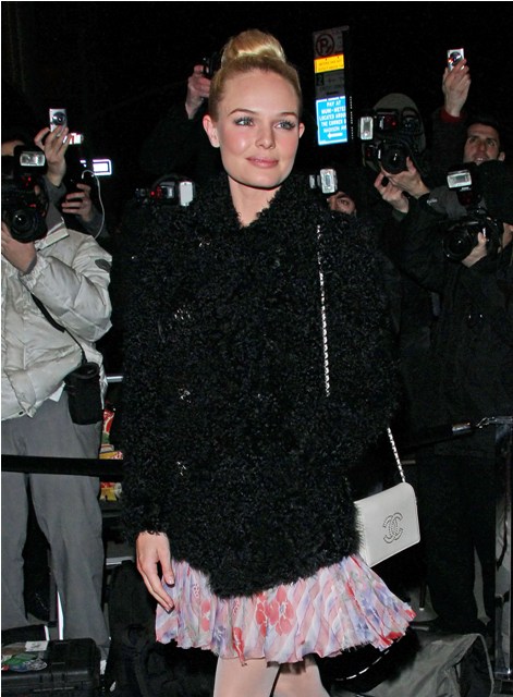 But she’s skinny. And she loves clothes. And Karl Lagerfeld is impressed with the way she sticks her finger down her throat. So she shows up at fashion events, like last night for Chanel, and gets free sh-t all the time, and shows up smug and half smiley, like it’s a f-cking chore to have her picture taken to remind us that she exists.