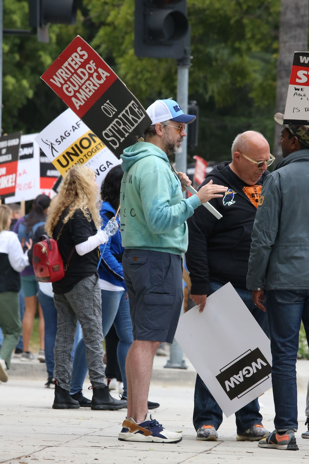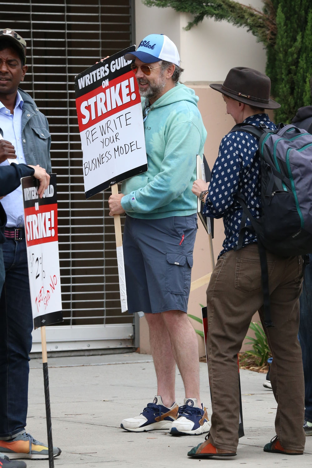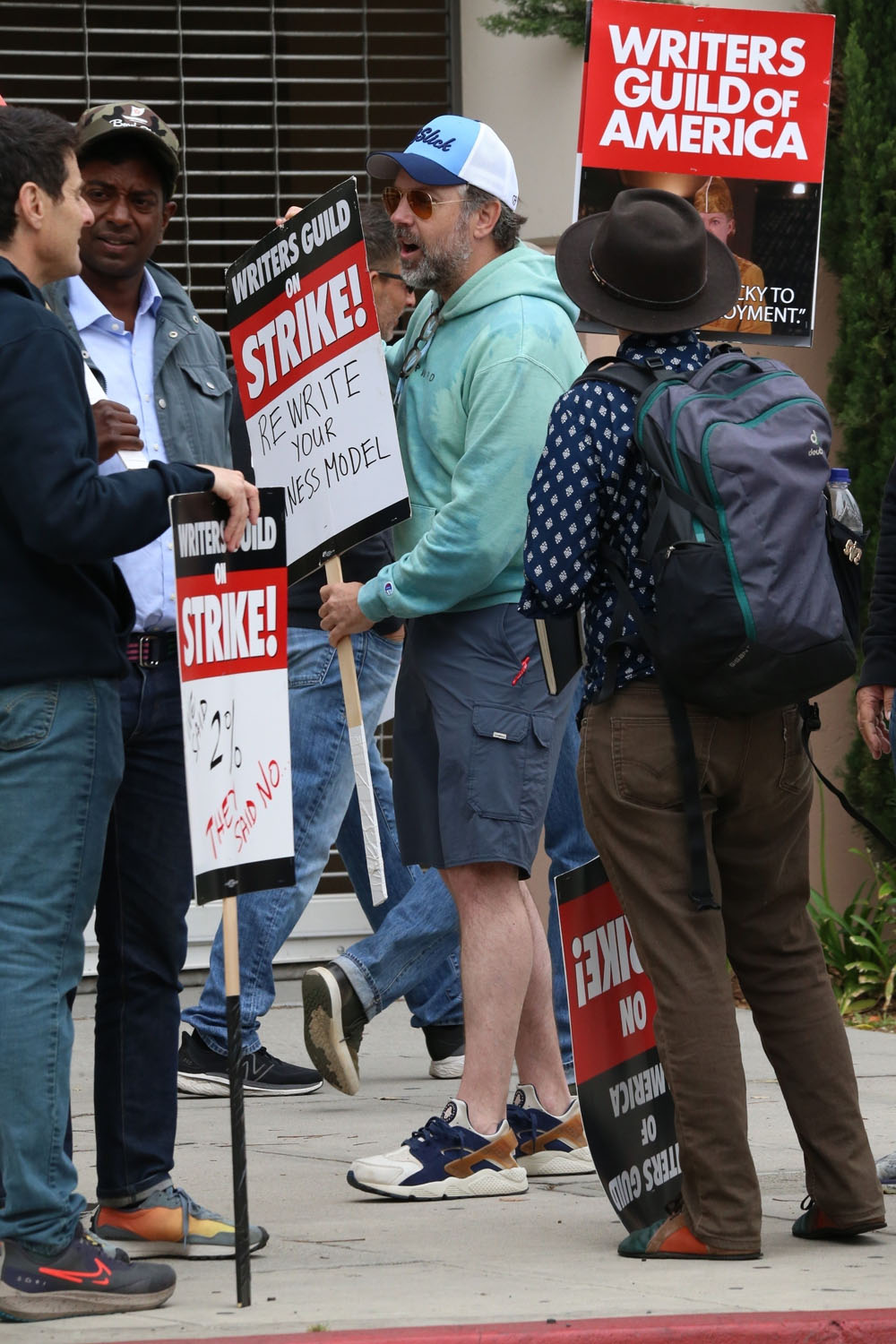 Attached - Jason Sudeikis supporting the Writer's strike today in LA.