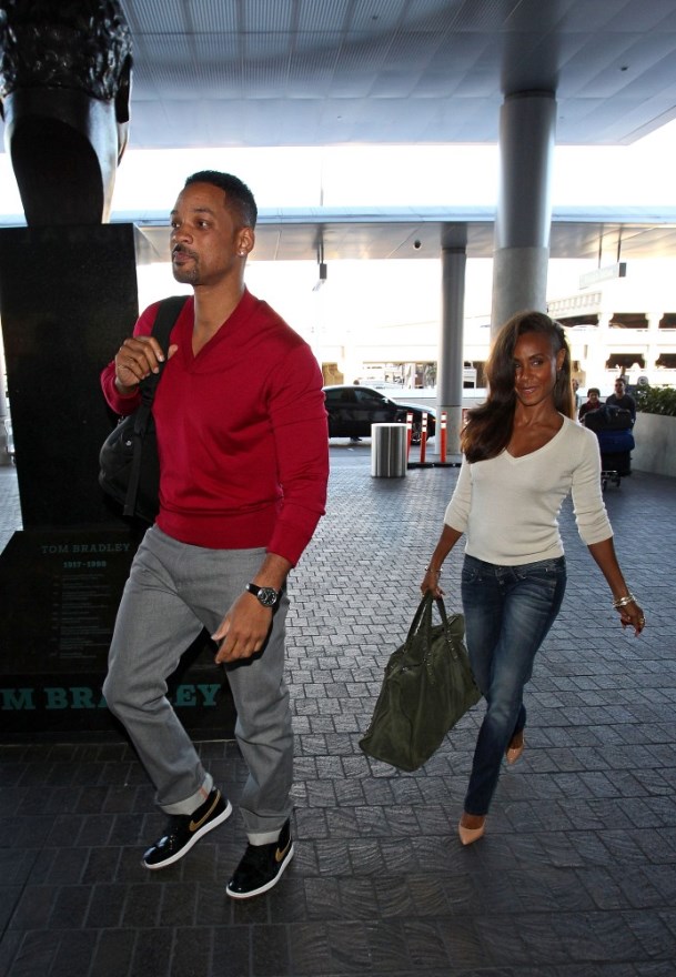 Well, there might be one. But it probably won’t be the Smiths. Here are Will and Jada at LAX yesterday leaving for Dubai, all smiles. There have been rumours for months that these two are done, that Jada’s been unhappy and singing songs about leaving him, and that a split is imminent. Maybe…eventually? But not in 2013. Photo Assumption says they’re almost going out of their way to make sure you don’t think it’s over. Right now, you’re supposed to think it’s all good. It’s so good they’re vacationing without their kids. So where the Smiths are concerned, we are also ending the year the way it began – status quo.