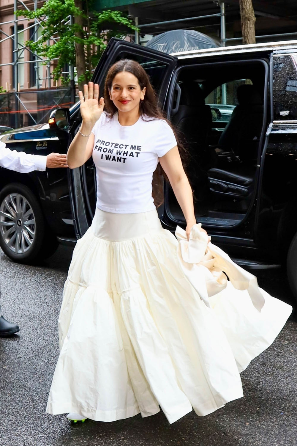 Finally, Rosalía is in town, she too has been attending the event pretty steadily. Can’t say that I’ve really locked into any one of her previous looks but I do like this fit she has on in advance of the party. Could be promising.