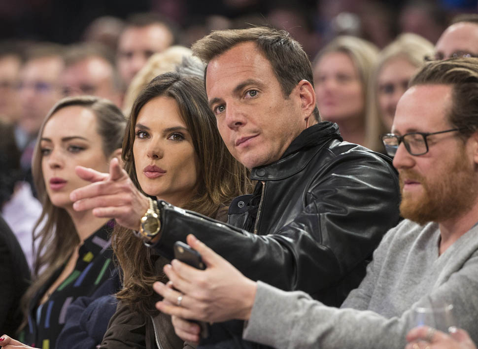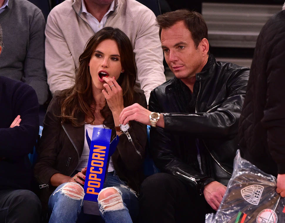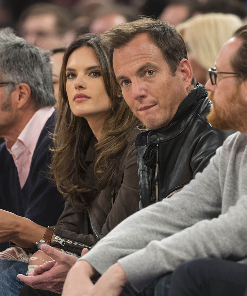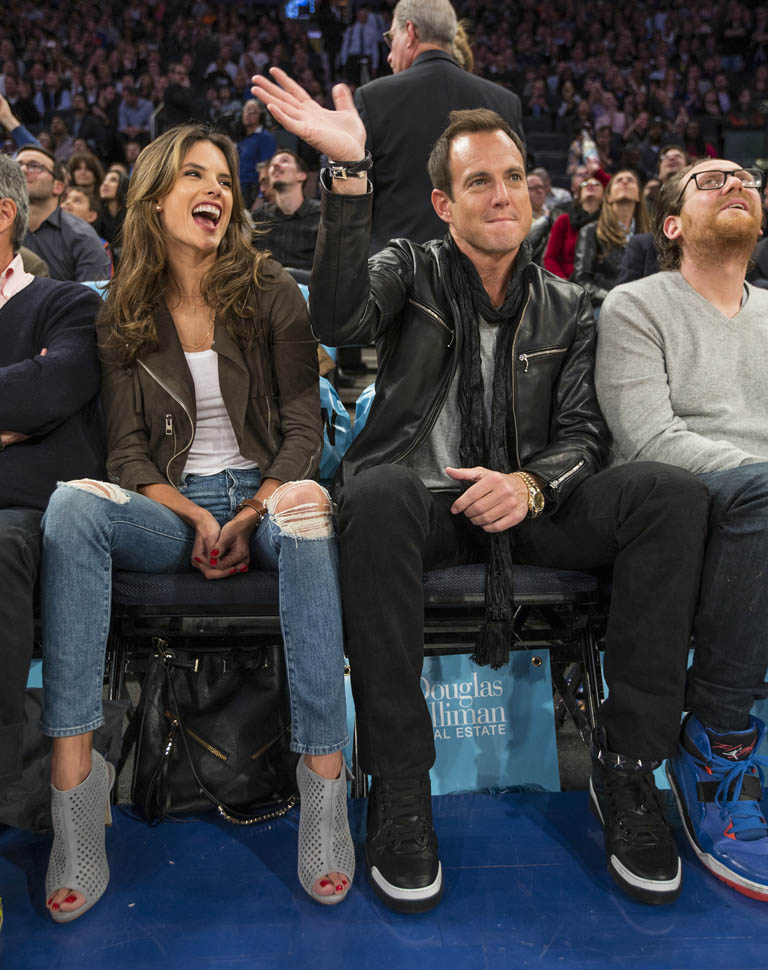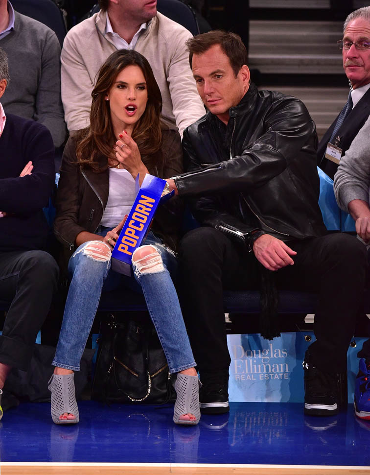 Anyway, here’s Will Arnett at the Knicks game last night sitting beside model Alessandra Ambrosio. Some are saying that they were there shooting scenes for the Michael Bay’s new Ninja Turtles. You know Michael Bay. If there’s any way he can include a model, he’ll find it. If there’s no way for him to include a model, he’d still find it.