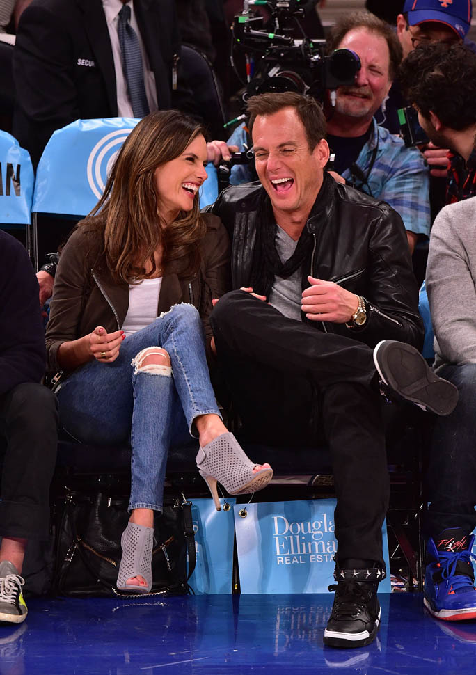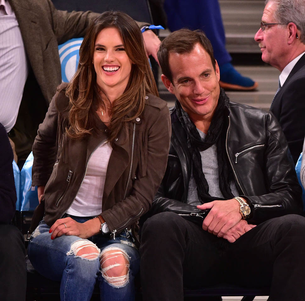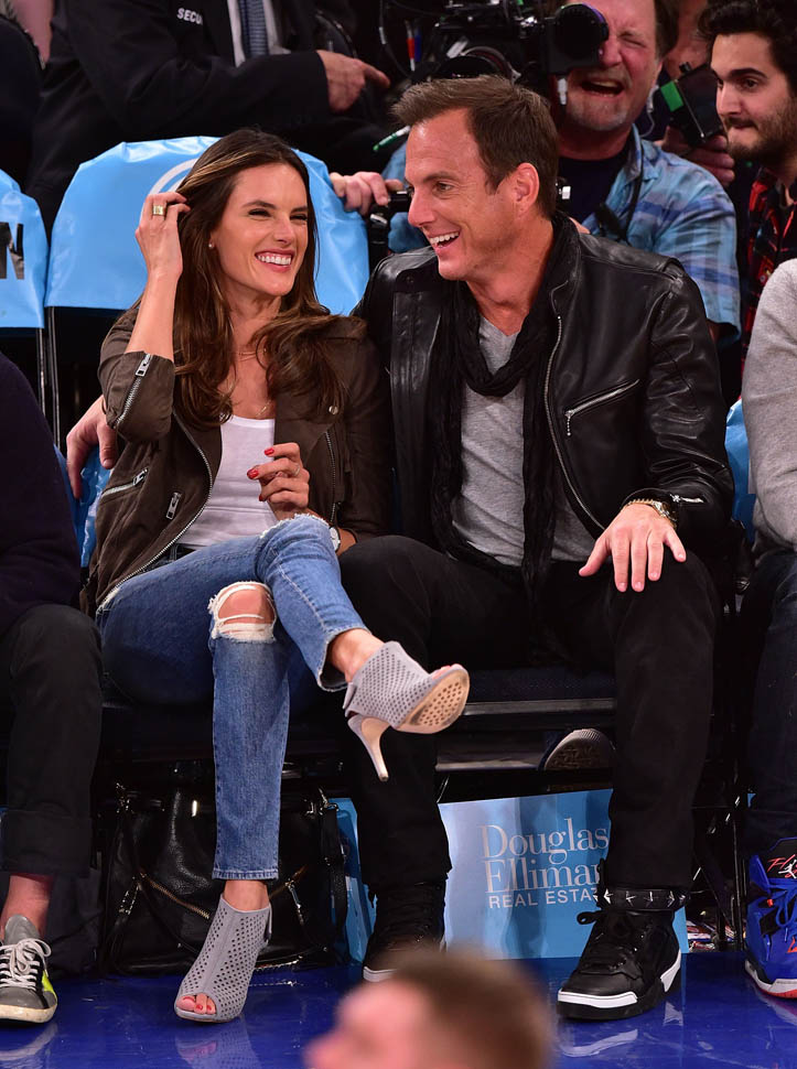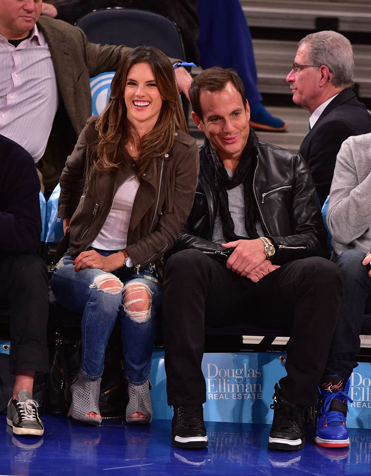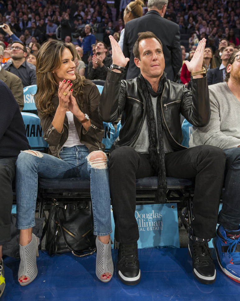 Anyway, here’s Will Arnett at the Knicks game last night sitting beside model Alessandra Ambrosio. Some are saying that they were there shooting scenes for the Michael Bay’s new Ninja Turtles. You know Michael Bay. If there’s any way he can include a model, he’ll find it. If there’s no way for him to include a model, he’d still find it.