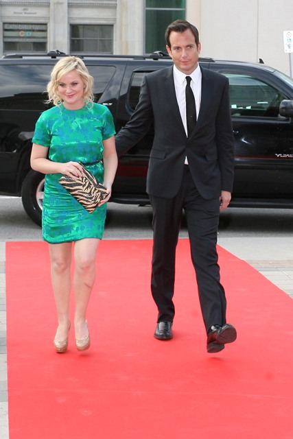 Will was joined by wife Amy Poehler and God I love her so much for being there with him and God I love them so much for being so great together. They posed on the press line for a while and then, as Will was being interviewed, Amy apparently went off to go hang out with his family. Also, yes, Arrested Development is on. Will confirmed this week on several talk shows and to reporters last night that they start shooting the miniseries in the next couple of months and then straight through to the movie this summer.
