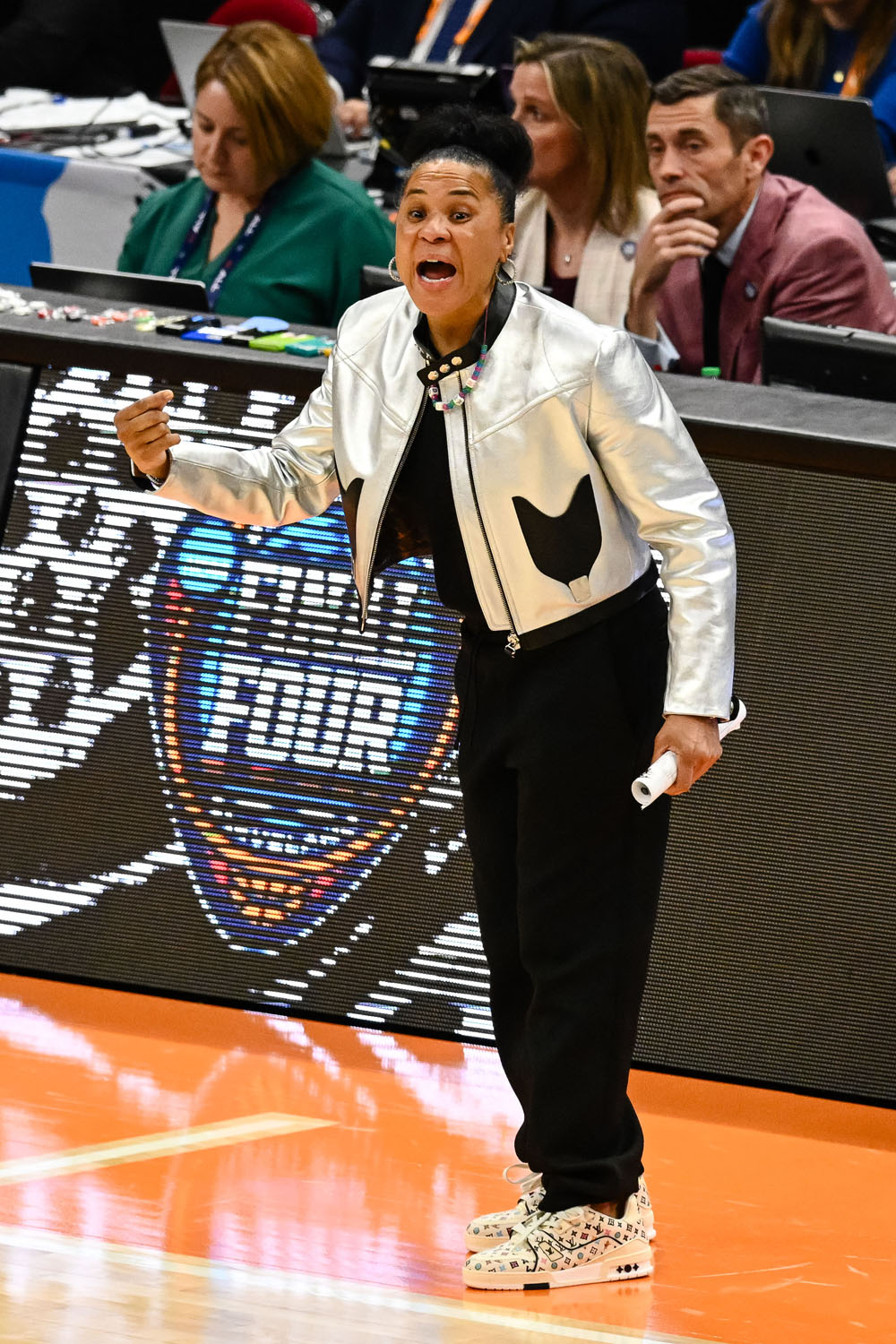 But the players aren’t the only ones with the drip. Coach Staley’s silver jacket yesterday and Louis Vuitton kicks yesterday deserved their own trophy!