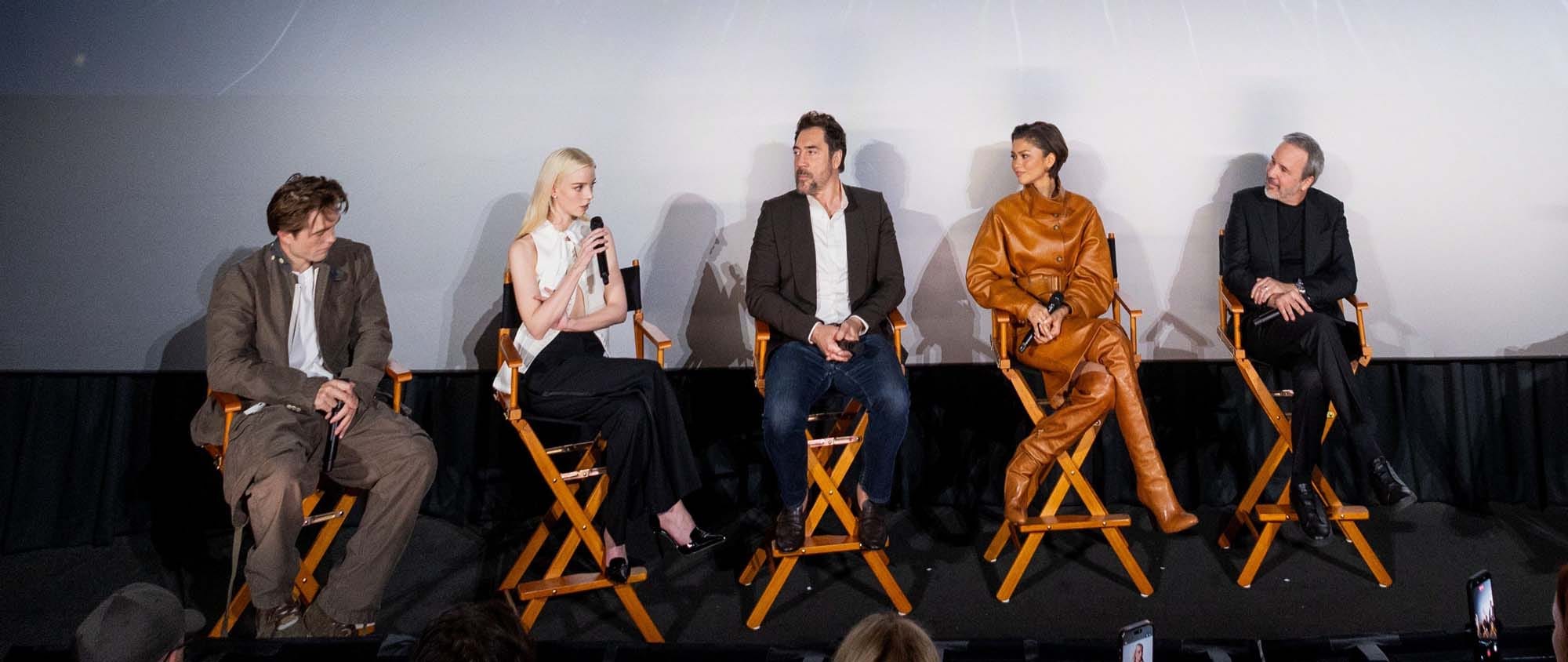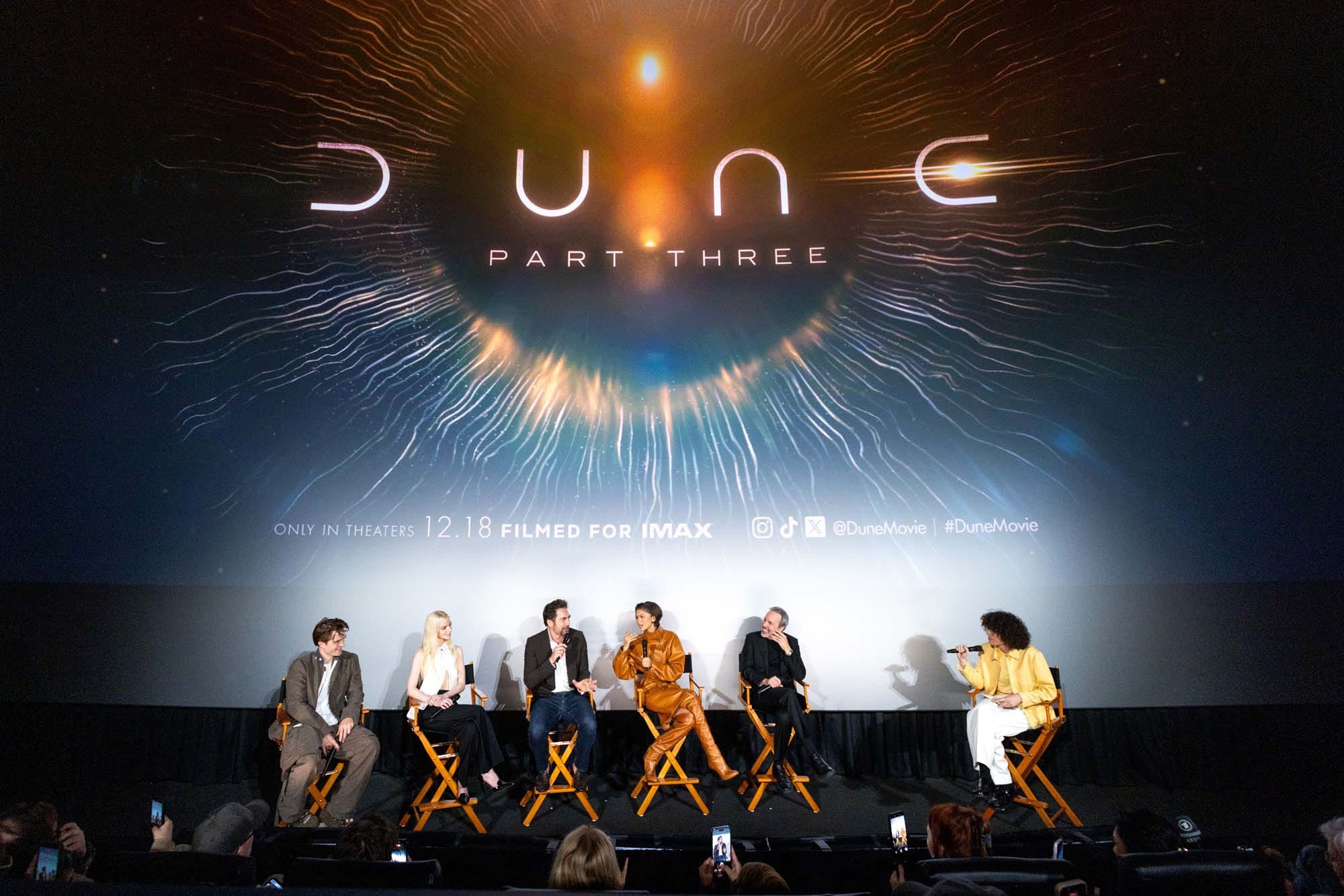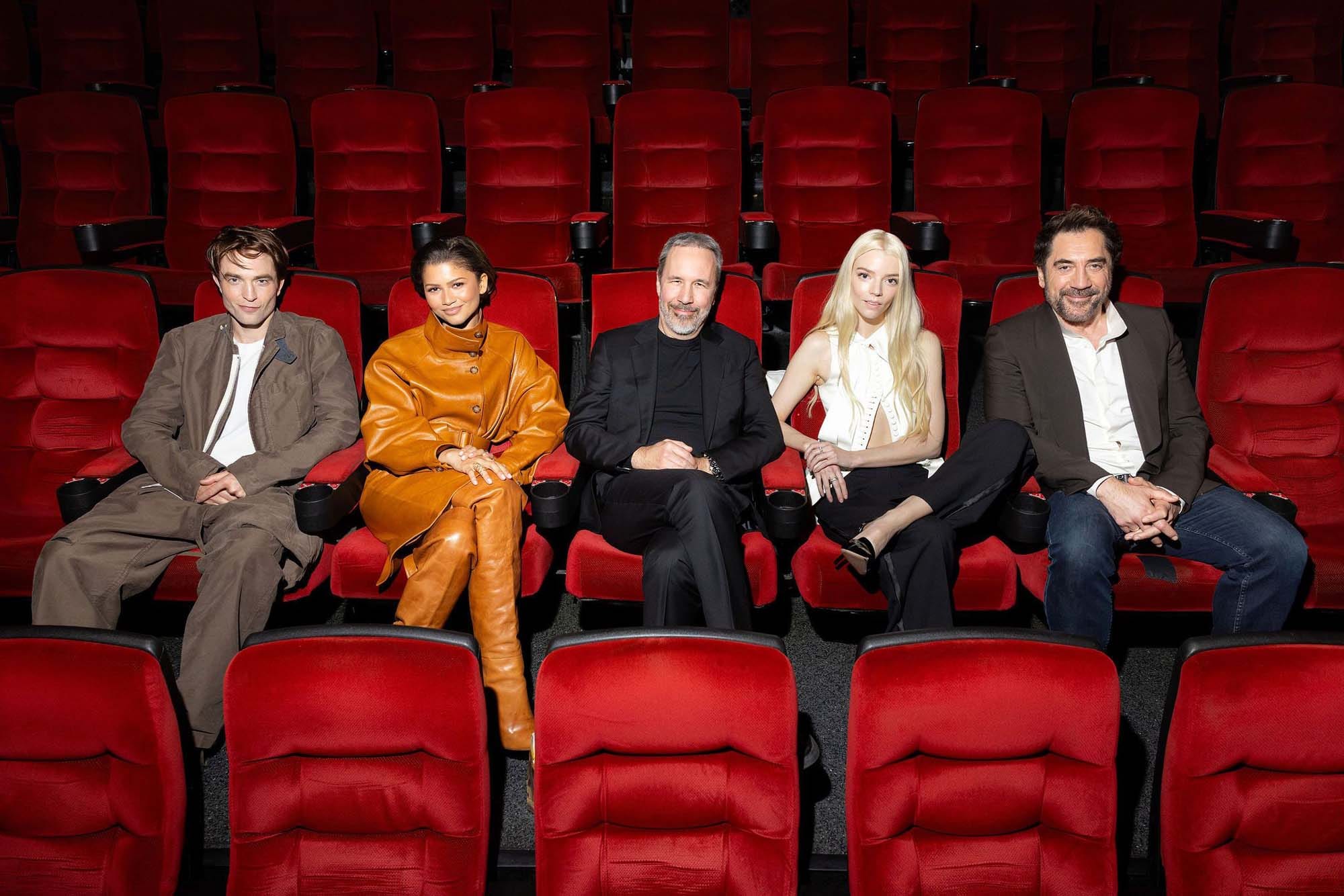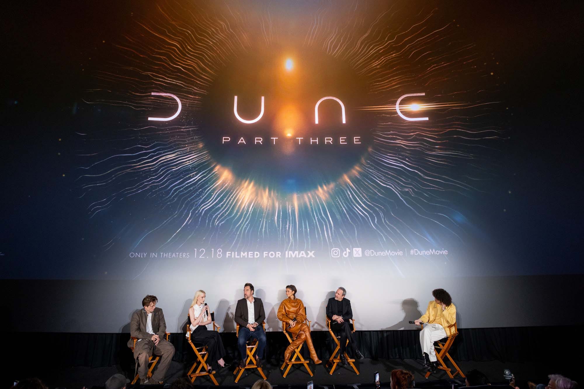 Robert Pattinson, Zendaya, Denis Villeneuve, Anya Taylor-Joy and Javier Bardem, from left, at the Warner Bros. Pictures, trailer launch event of "DUNE: Part Three" at the AMC Century City 15, in Los Angeles, California, March 16, 2026