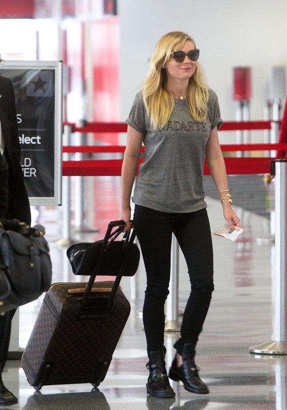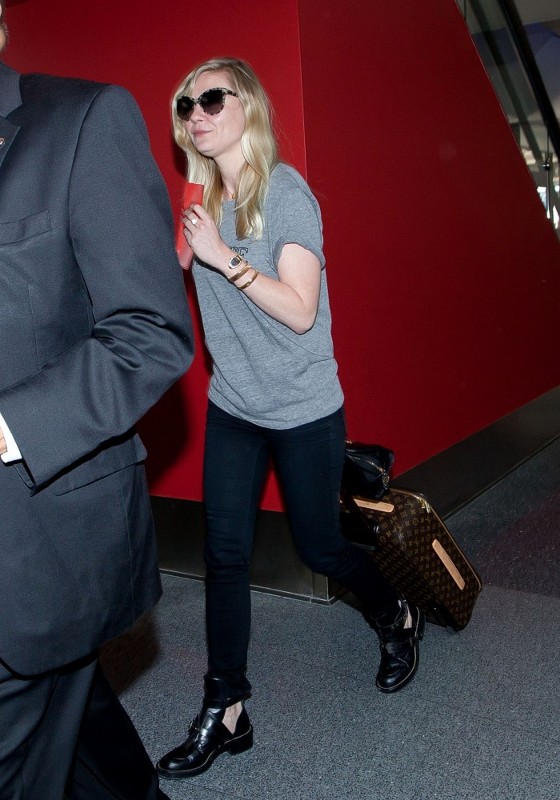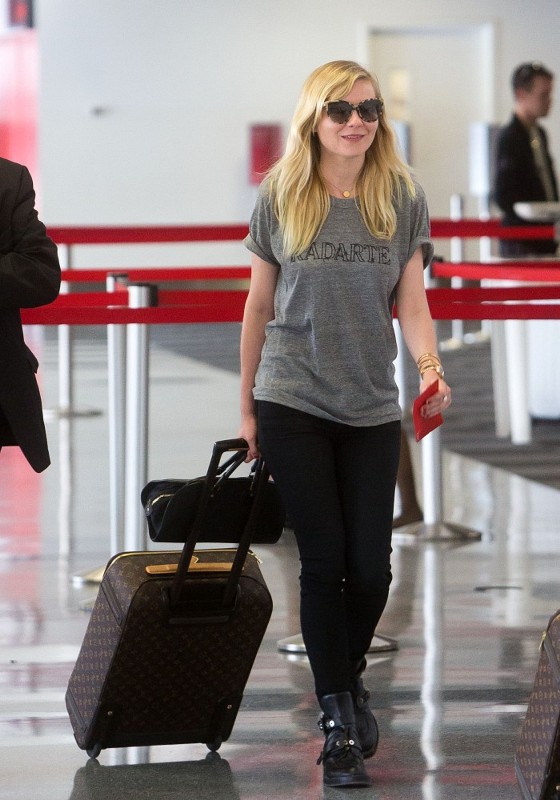 But if there’s one actress who’d be willing to take a punk risk, it could be Kirsten Dunst. Kirsten wore a Rodarte t-shirt on her way from LA to NYC on Friday. She also wore Rodarte (she’s one of their favourites) last year at the MET Gala. Click here to see. Kiki might bring it.