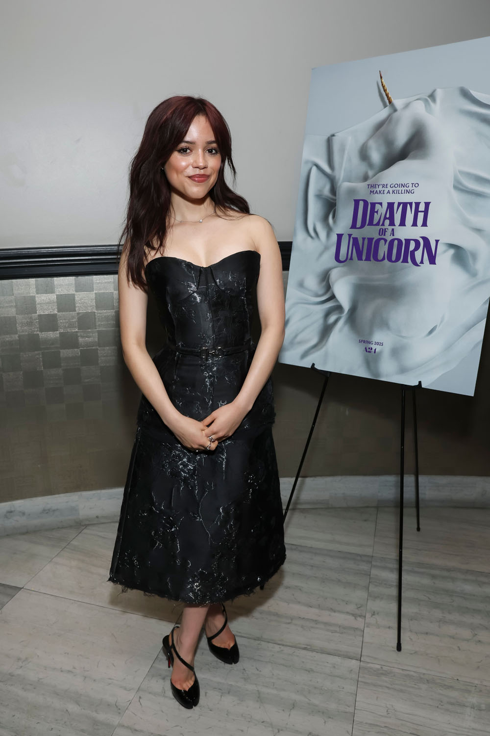 It’s not like Jenna Ortega twiddled her thumbs in the interim, though. She has become one of the most in-demand young actresses working today, and she has a new movie coming out next week. Death of a Unicorn is currently doing the press rounds, with most of the cast attending a special screening in Los Angeles last night. I say “most” because Paul Rudd has been absent from the press tour, except for the film’s premiere at SXSW earlier this month. Presumably, he’s back in Australia working on the Anaconda remake.
