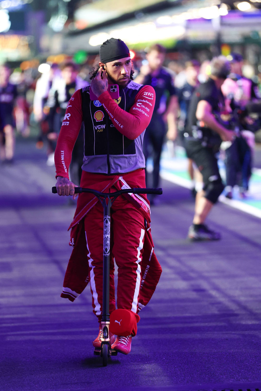 Still, she showed up in the paddock to make a splash. This hot pink body suit, LOL FOREVER. But also, like, on theme, right? You could argue that what JLo’s wearing is a racing suit, her version of it anyway. Our girl is trying to be aerodynamic, OK?!