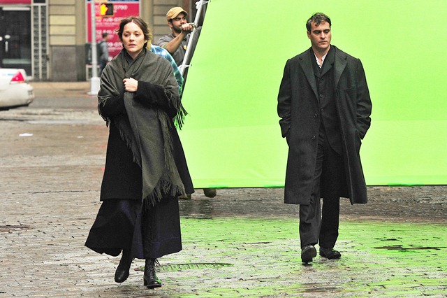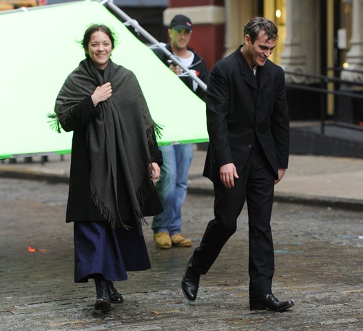 Here they are, Joaquin and Marion, on the set of the new James Gray film in New York today. This will be Joaquin’s fourth collaboration with the director after The Yards, We Own The Night, and Two Lovers.