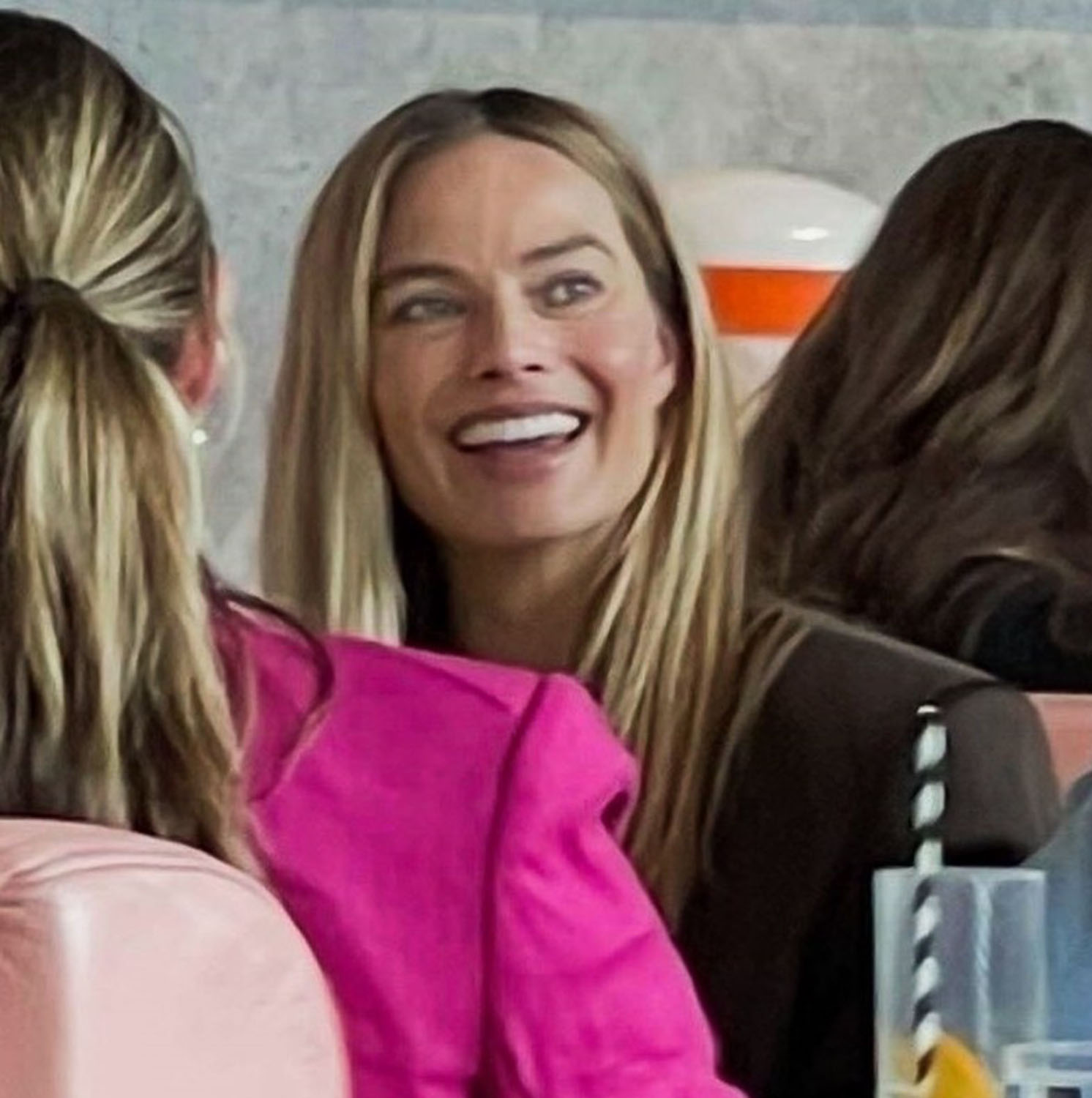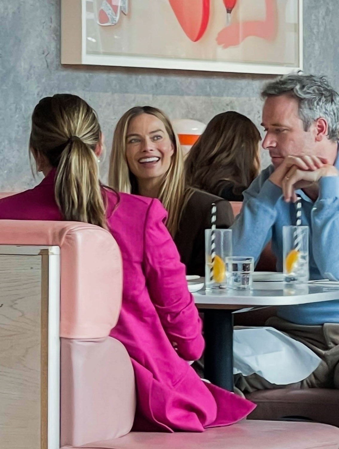 Margot Robbie was photographed in London this week with her husband Tom Ackerley having lunch with a group of friends at a restaurant called Bondi Green. She’s Australian, the restaurant is Aussie inspired, so I’m guessing this was some friendly (as in free) promo for the establishment. Apparently it was drinks on her for everyone there when she was leaving.