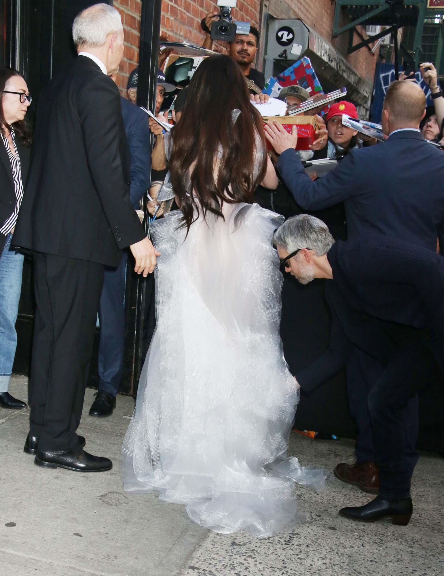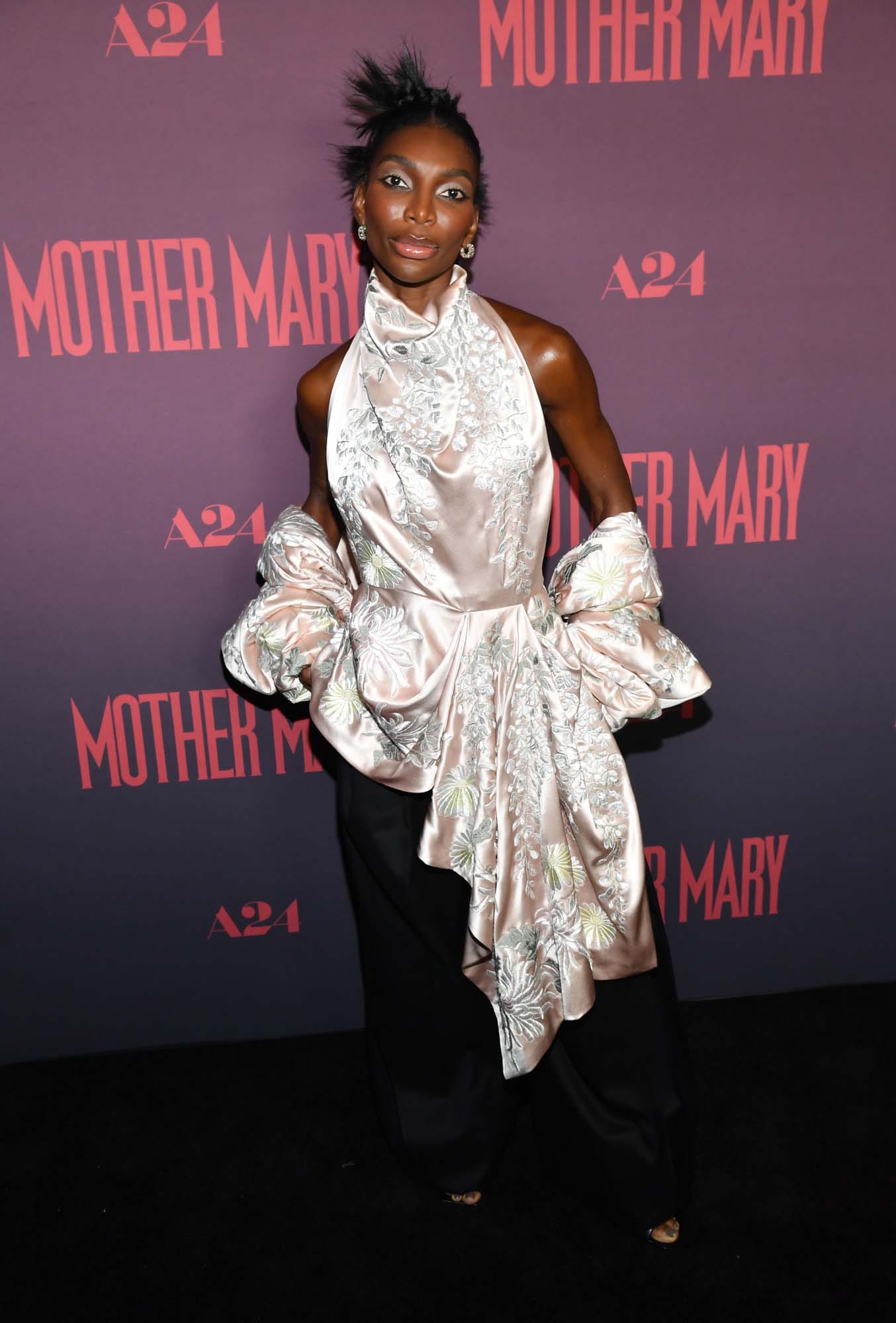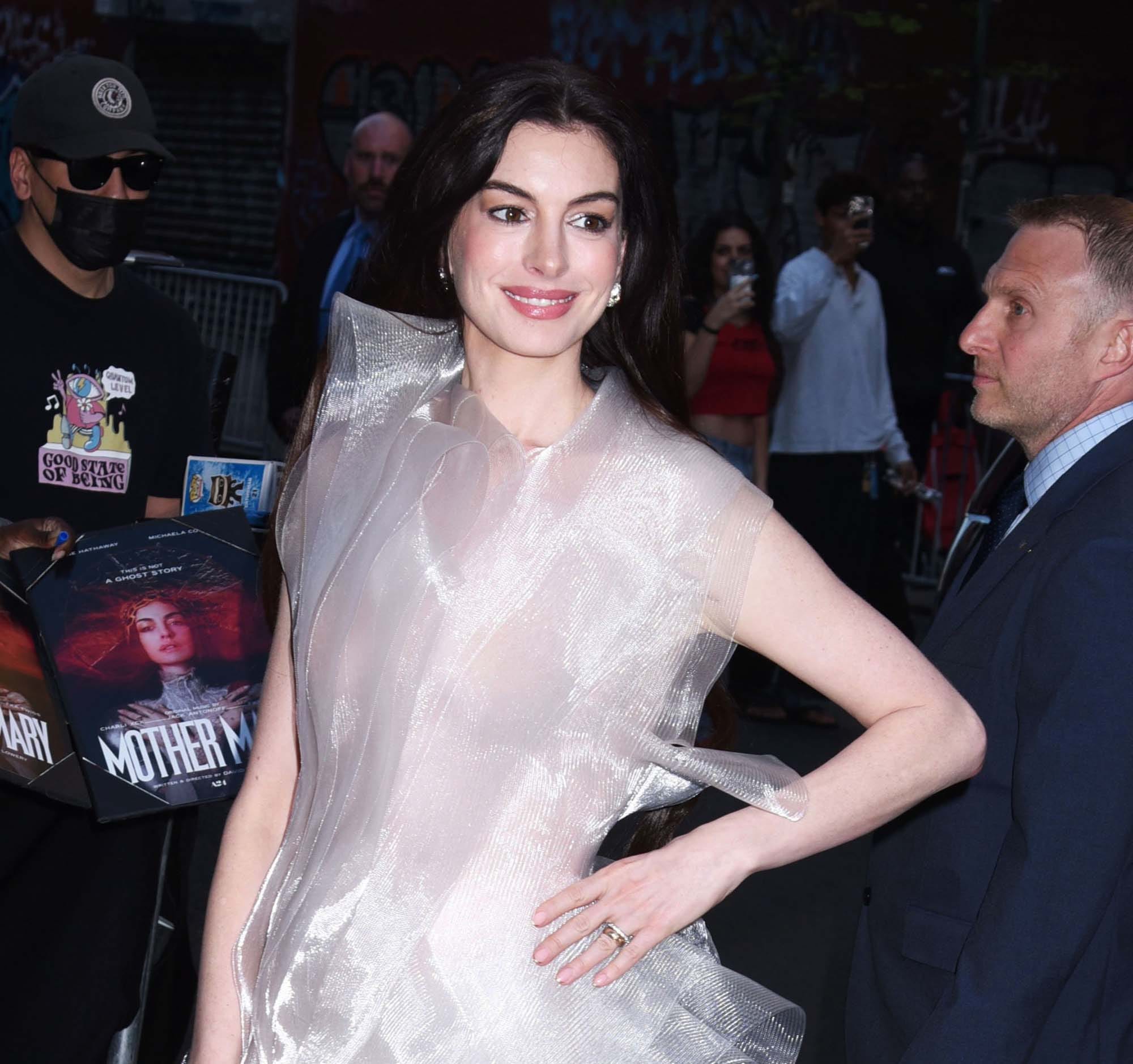 After taking The Devil Wears Prada 2 press tour through East Asia last week, Anne Hathaway was back in New York last night, redirecting her attention to Mother Mary. She plays a popstar kinda like Lady Gaga, with performance footage in the film that is said to have been inspired by Taylor Swift’s The Eras Tour. The problem is that Mother Mary is in a slump, and she needs her ex-best friend, Michaela Coel, to make her a dress so that she can perform the greatest show of her life. The film, then, is basically the two women working out their sh-t. That’s as much as we know from the trailer.