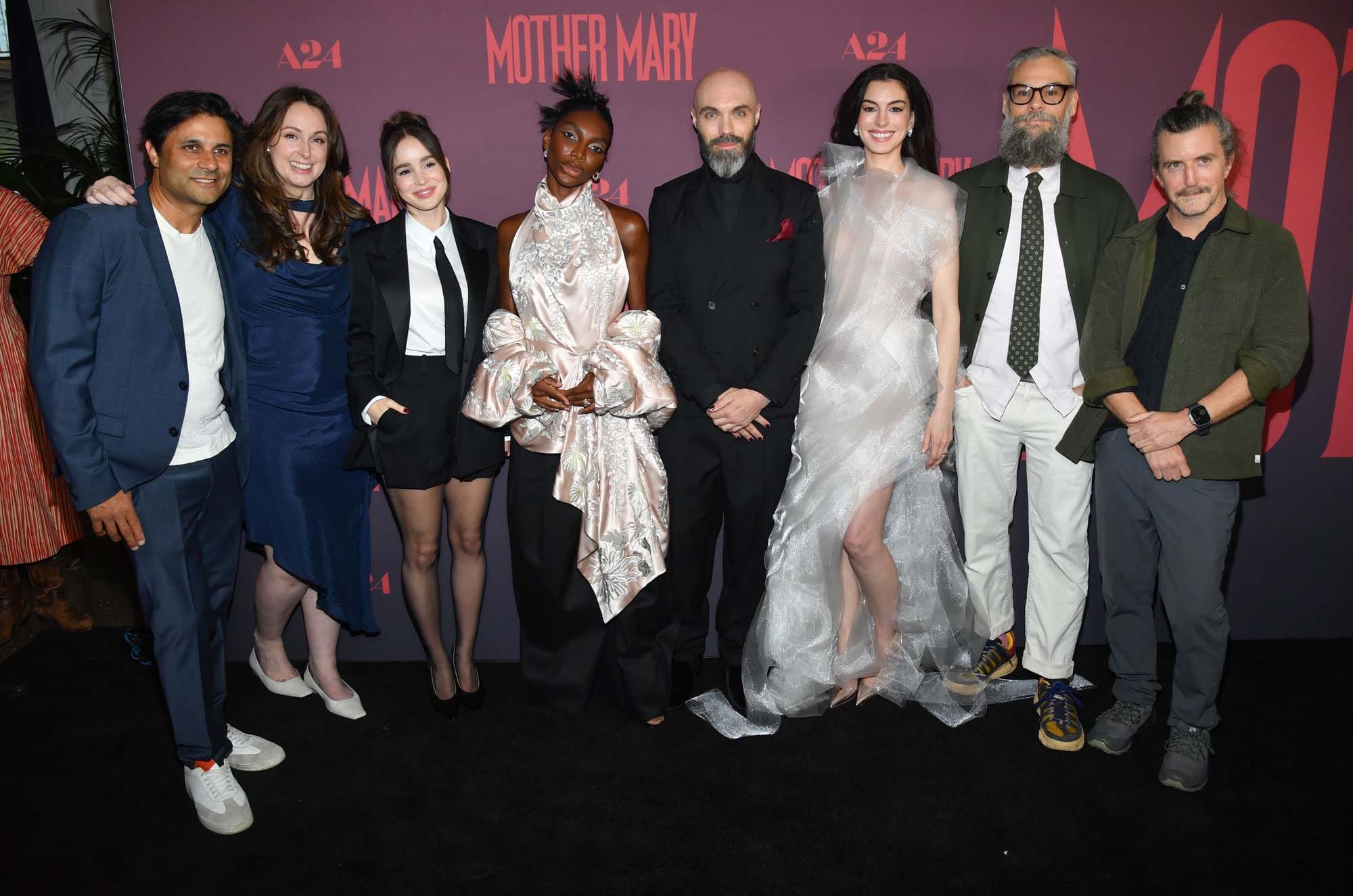 Maximilian Leo, Jeanie Igoe, Alba Baptista, Michaela Coel, David Lowery, Anne Hathaway, James Johnston, Toby Halbrooks, FKA twigs attend A24's "Mother Mary" New York Screening at Metrograph on April 13, 2026 in New York City
